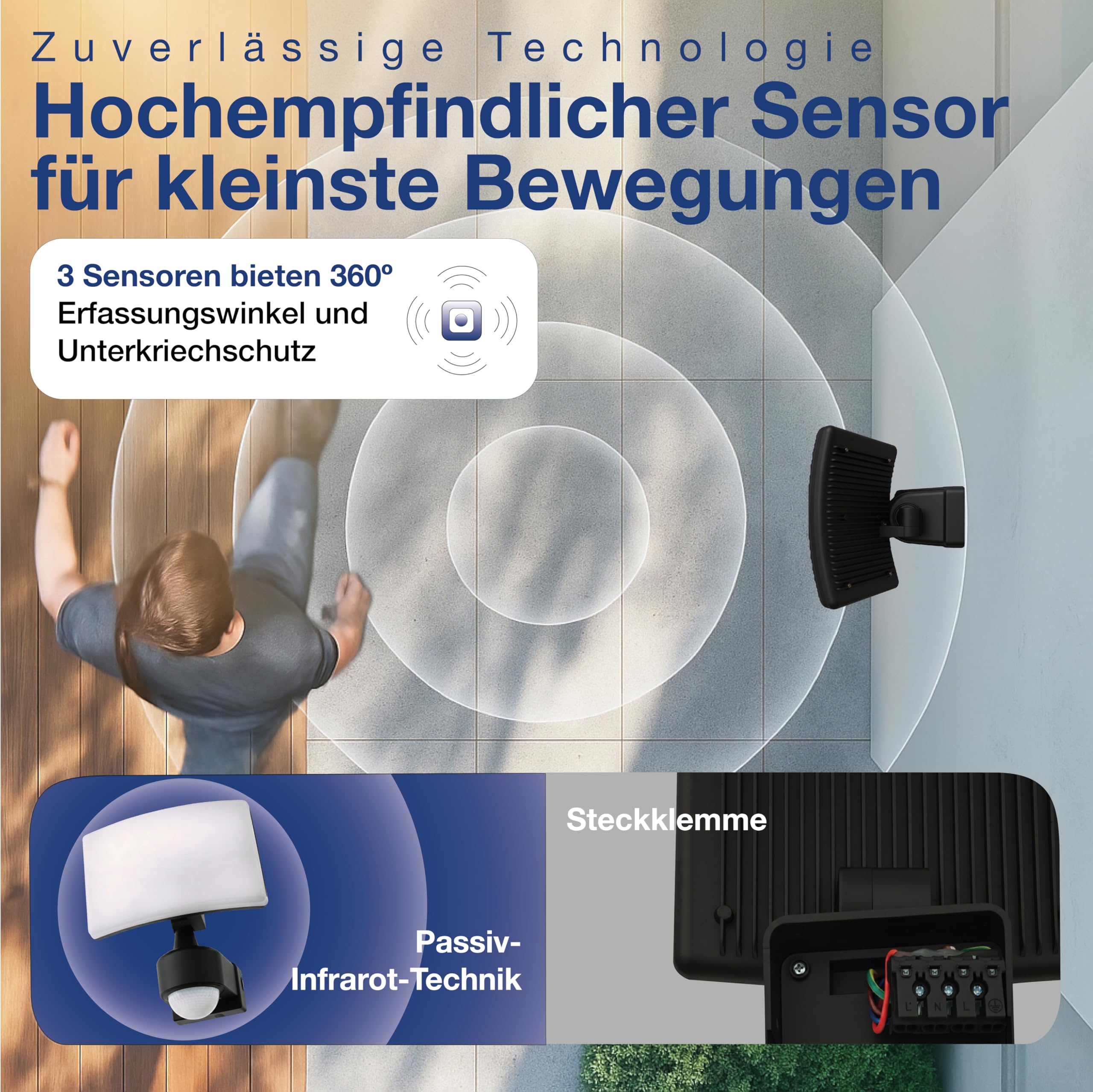 Schützen Sie den Bereich in Ihrem Haus, sorgen Sie für eine automatische Beleuchtung im Eingangsbereich, Garten, Flur oder Garage, die Einsatzmöglichkeiten sind nahezu unbeschränkt.