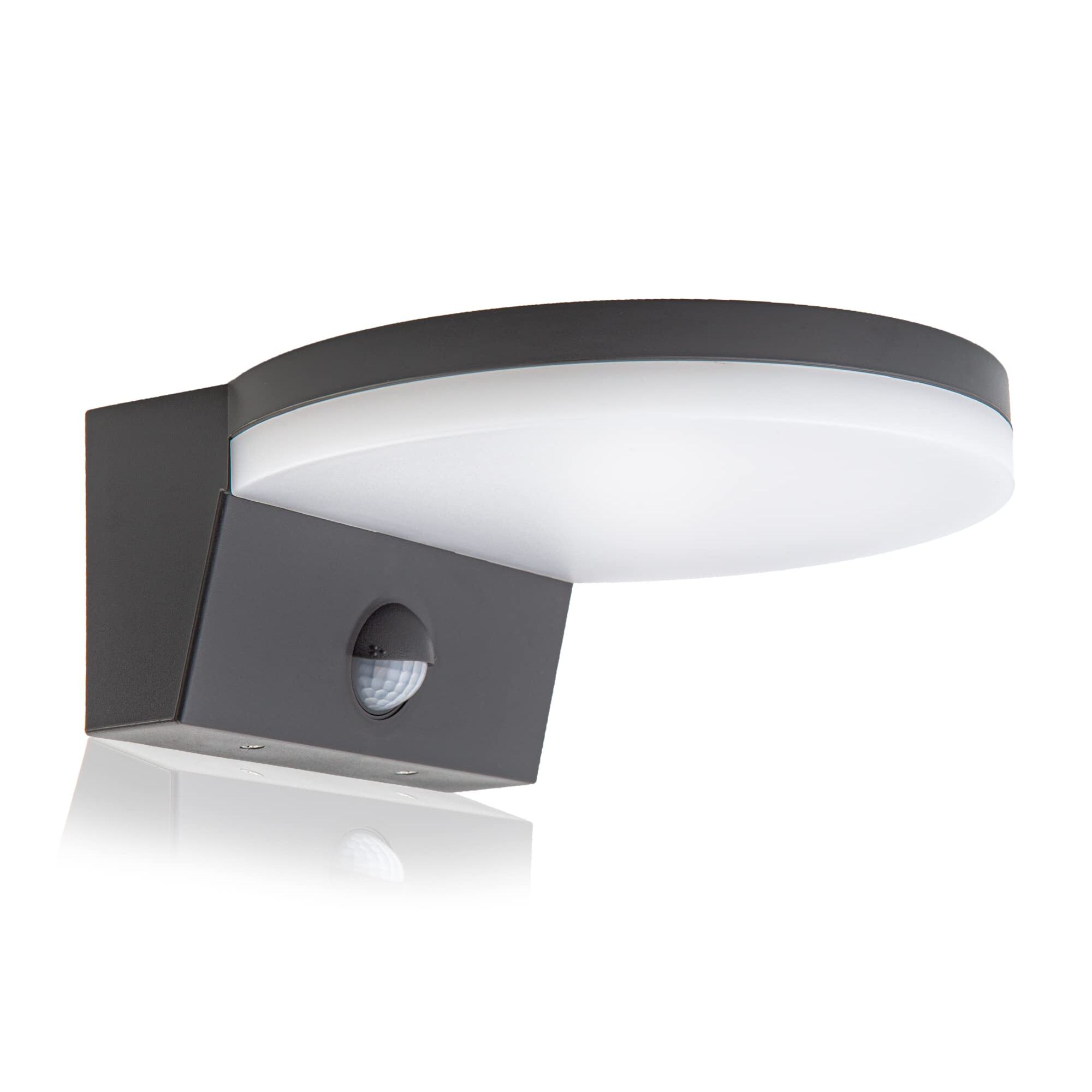 HUBER LED Wandlampe mit Bewegungsmelder 140° 15W, 2300lm I IP54 geschützte LED Aussenleuchte mit Bewegungssensor I Wandleuchte innen, Disk, anthrazit