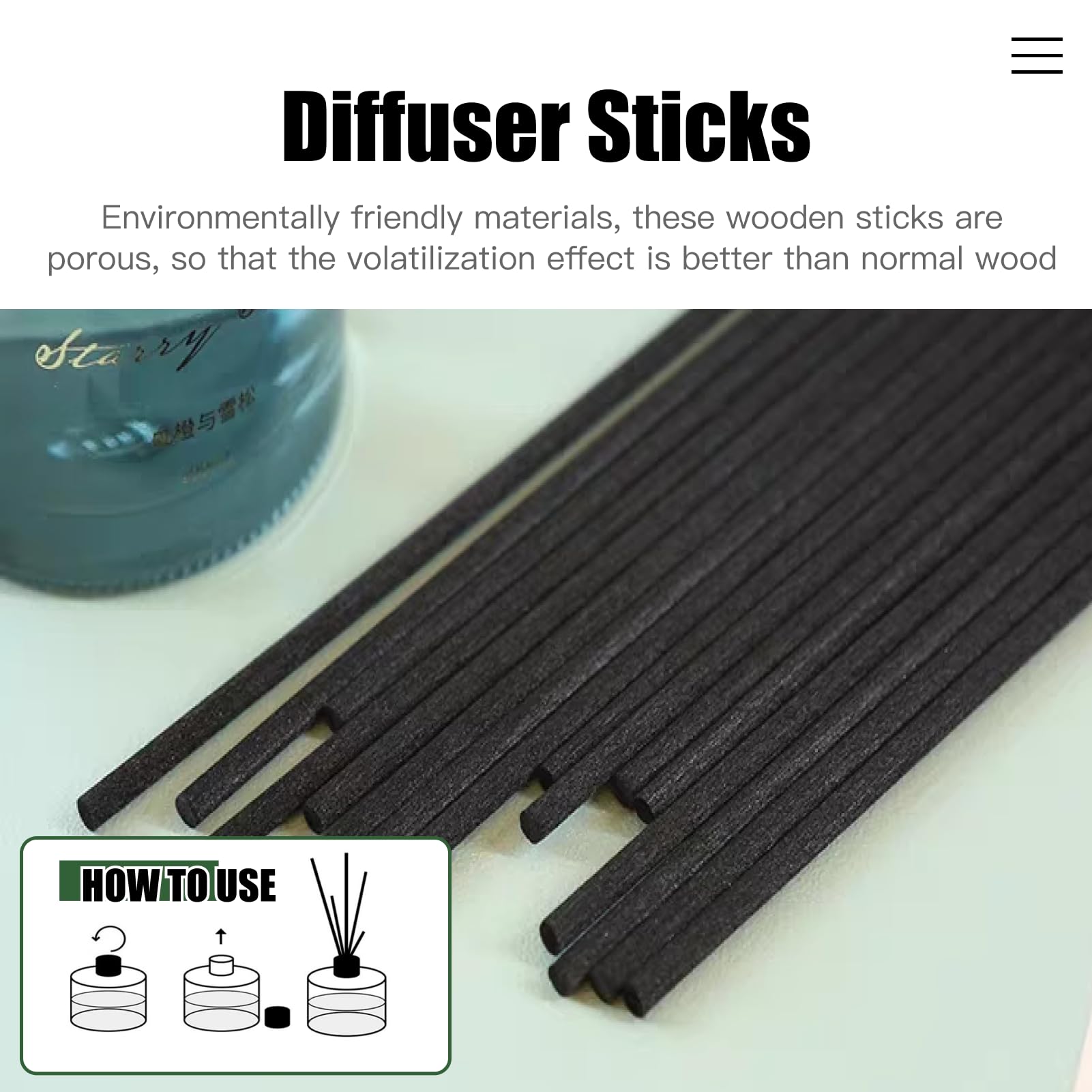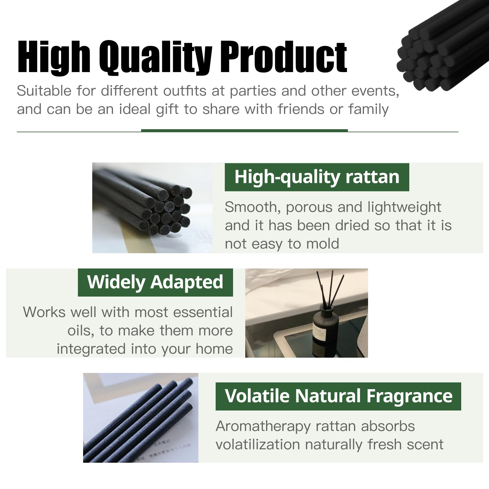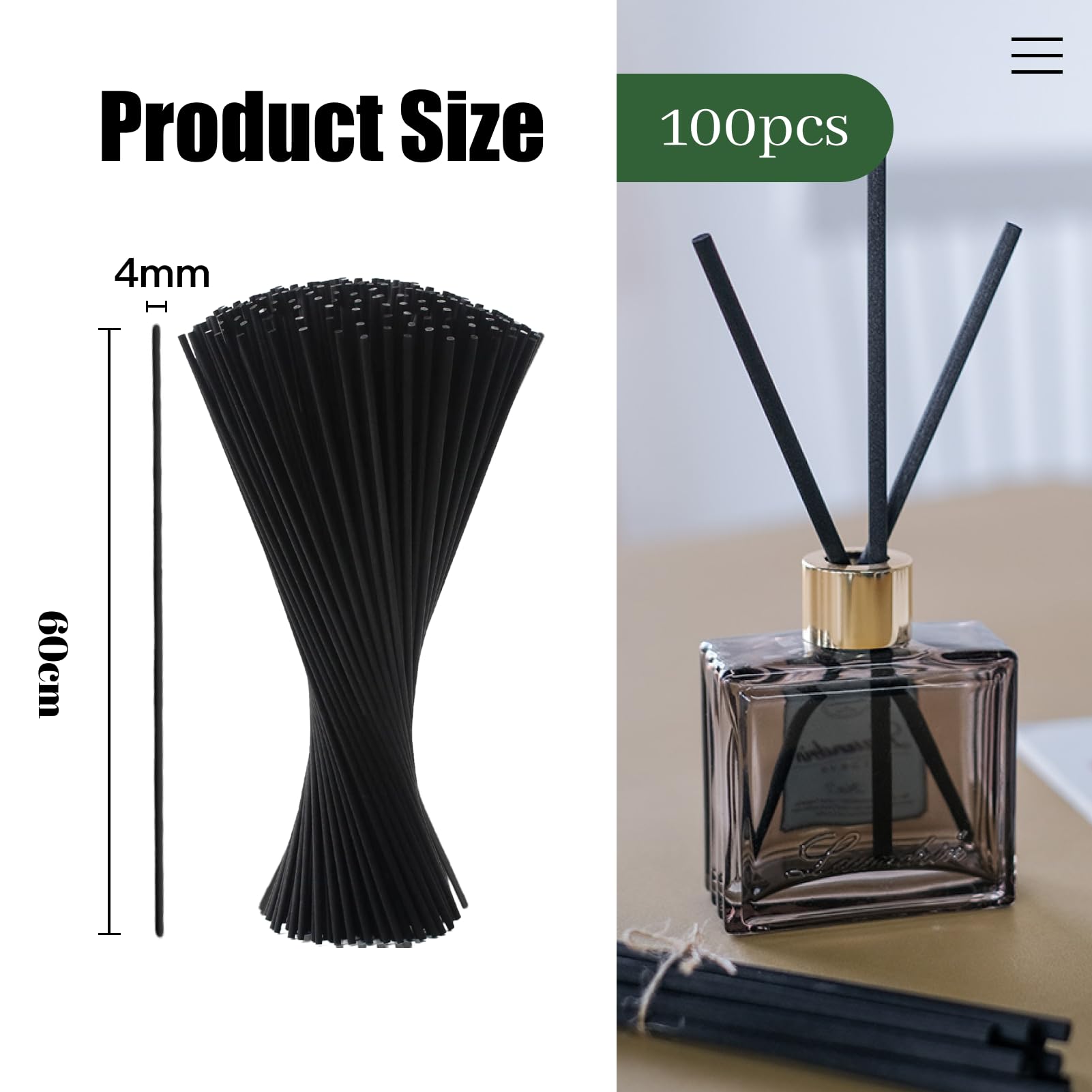 Hugwish 100pcs duftstäbchen aus Faser schwarz 60 cm, stäbchen für raumduft, Diffuser stäbchen, rattanstäbchen für raumduft (60cm x 4.0mm)