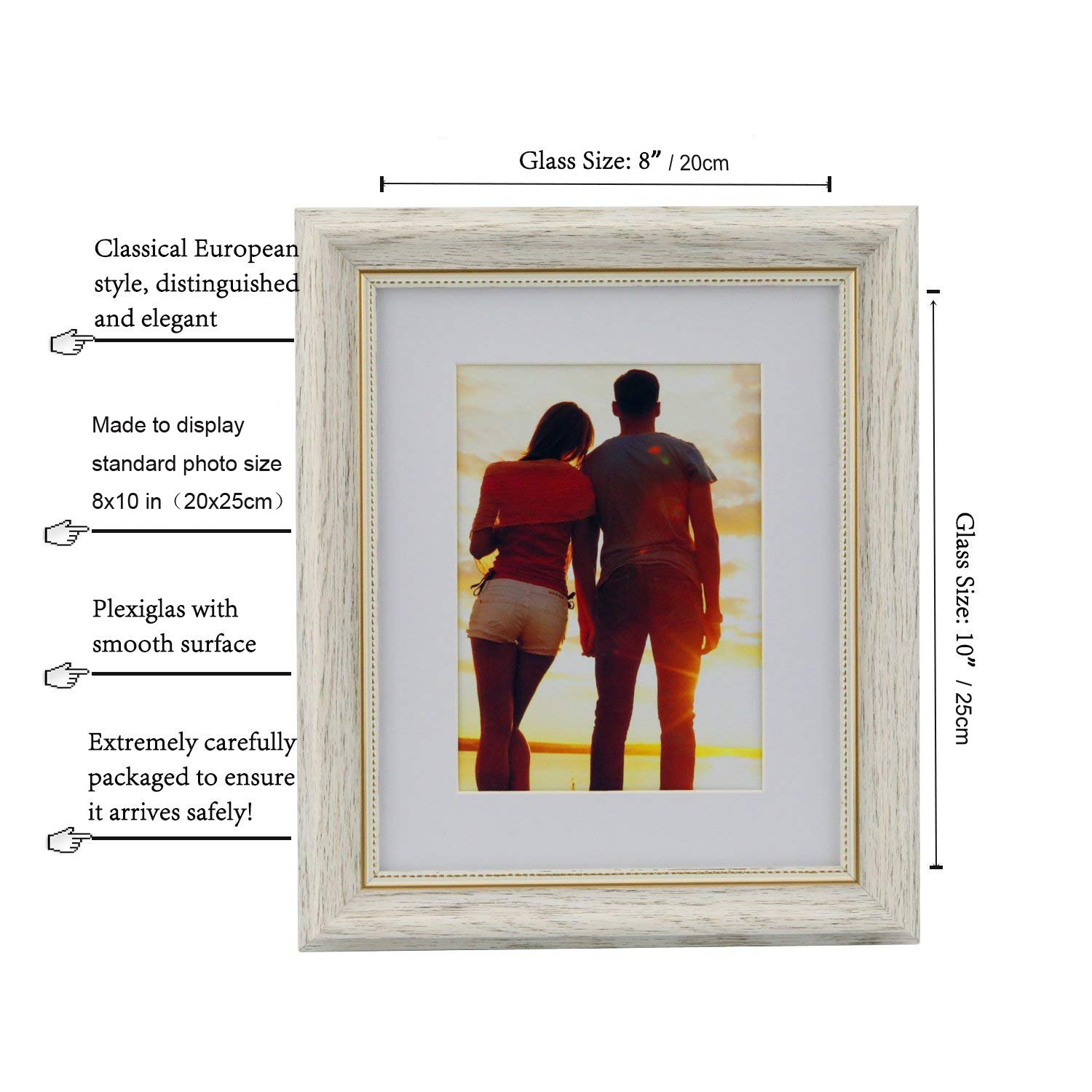 HUIXIANG Bilderrahmen 20x25 Vintage Fotorahmen mit Retro Bilderrahmen Rustikal für Fotos 20x25cm Aufgehängt Oder Tischplatte Geschenk für Hochzeit Jahrestag Freunde, Weiss