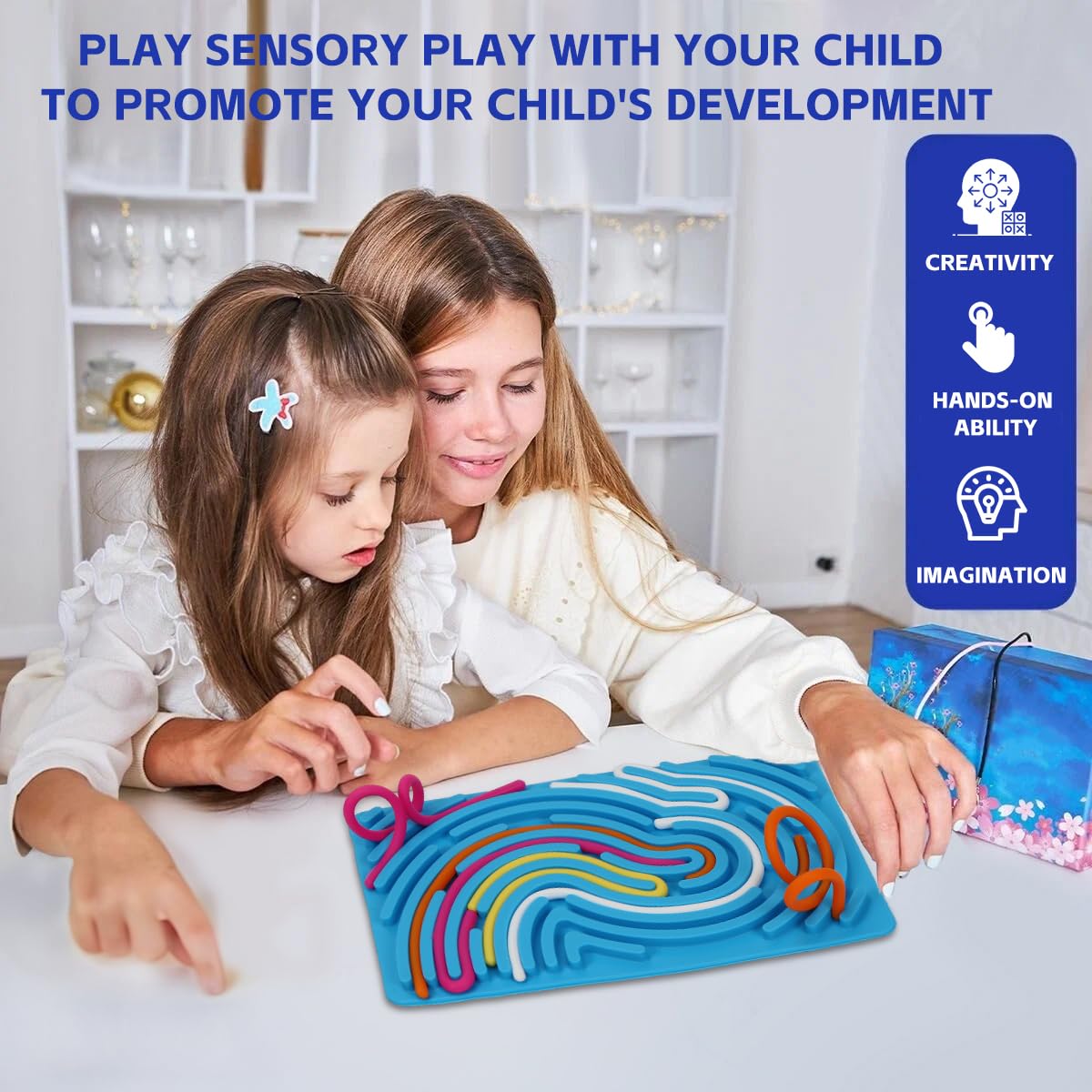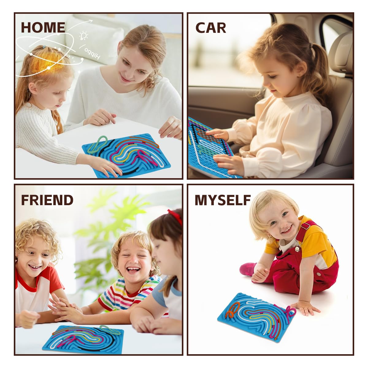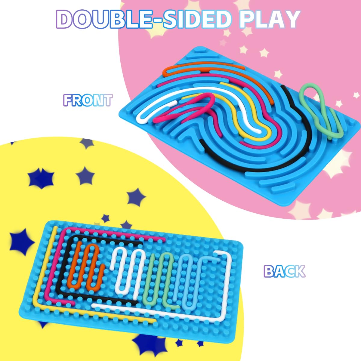 • ????【Sensory Activity Board】Sie können die Silikonfäden in den Rillen in jeder gewünschten Konfiguration platzieren, was die Erkundung und die Entwicklung von Feinmotorik und Hand-Auge-Koordination durch einnehmendes taktiles Spiel fördert,ausgezeichnet für Menschen mit ADHS, Autismus oder Angstzuständen.