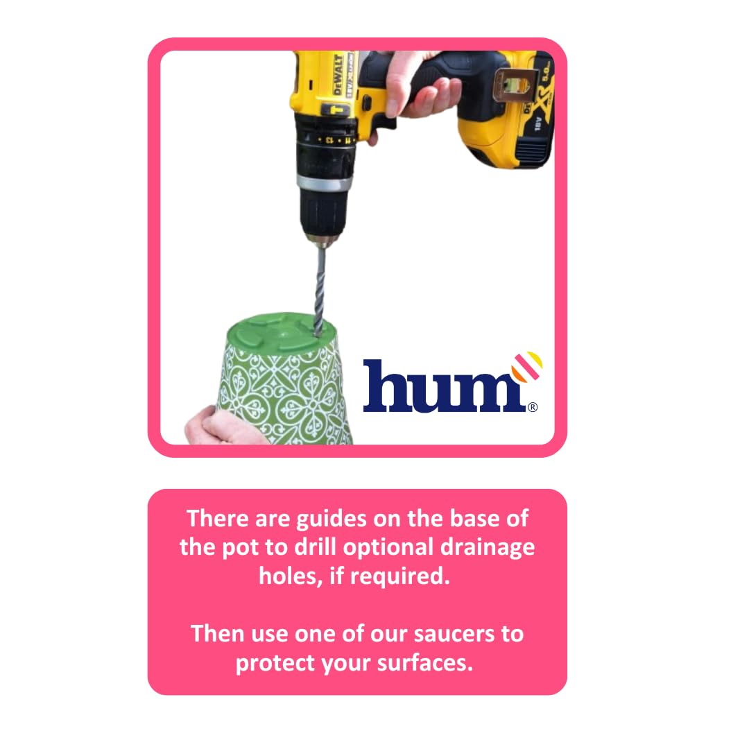 Hum Flowerpots, 15 cm Set mit 3 verschiedenen Mustern, Farben und Grössen, Kunststoff-Pflanztöpfe, für Innen- und Aussenbereich, Blaue Blätter