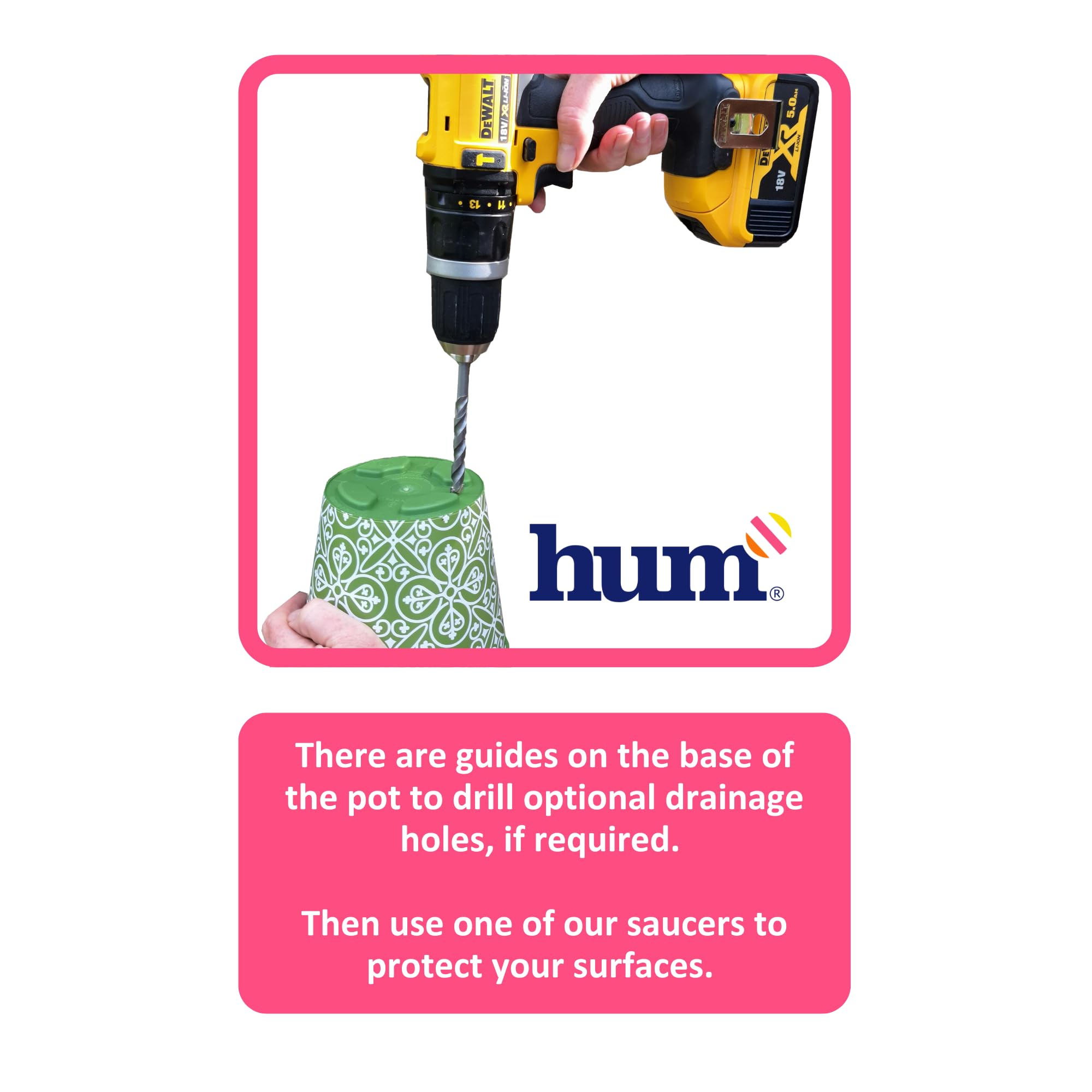 Hum Flowerpots, 15 cm Set mit 3 Stück, Kunststoff-Pflanztöpfe für Drinnen und Draussen, rosa Blumen und Biene
