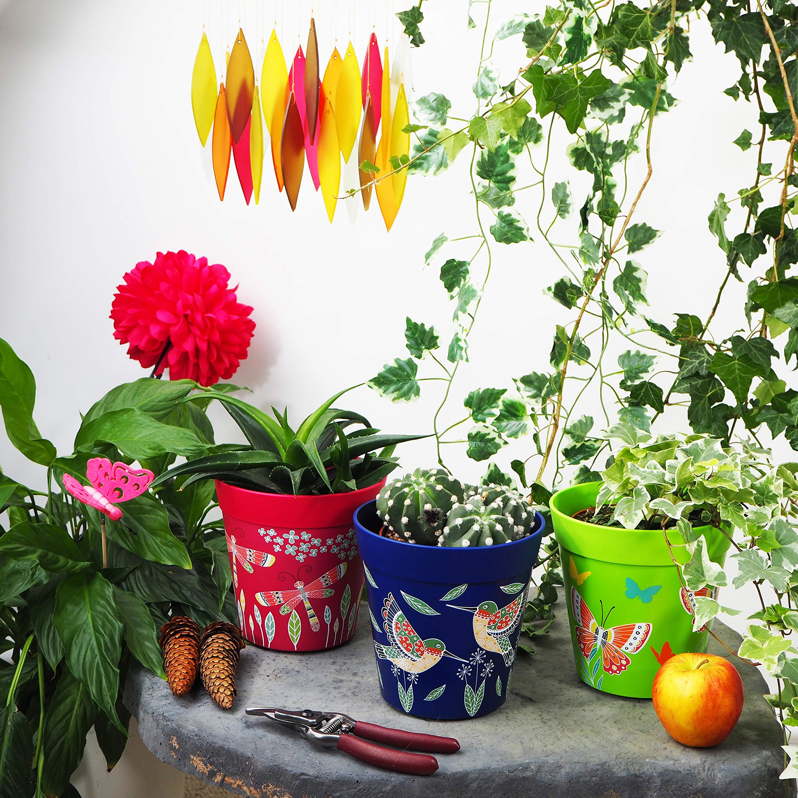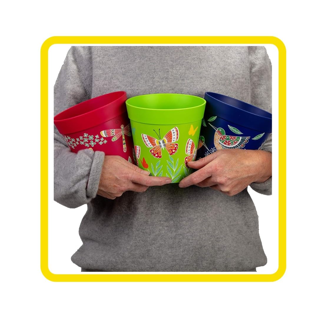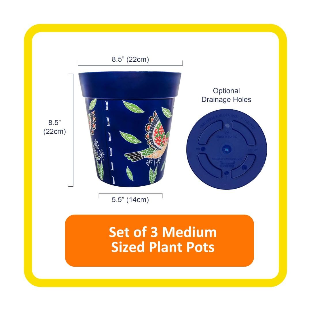 Hum Flowerpots, 15cm, 3er-Set, in Verschiedenen Farben und Mustern, Blumentöpfe aus Kunststoff für Drinnen und Draussen, Blau Rosa Grün