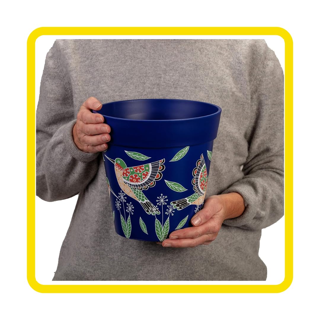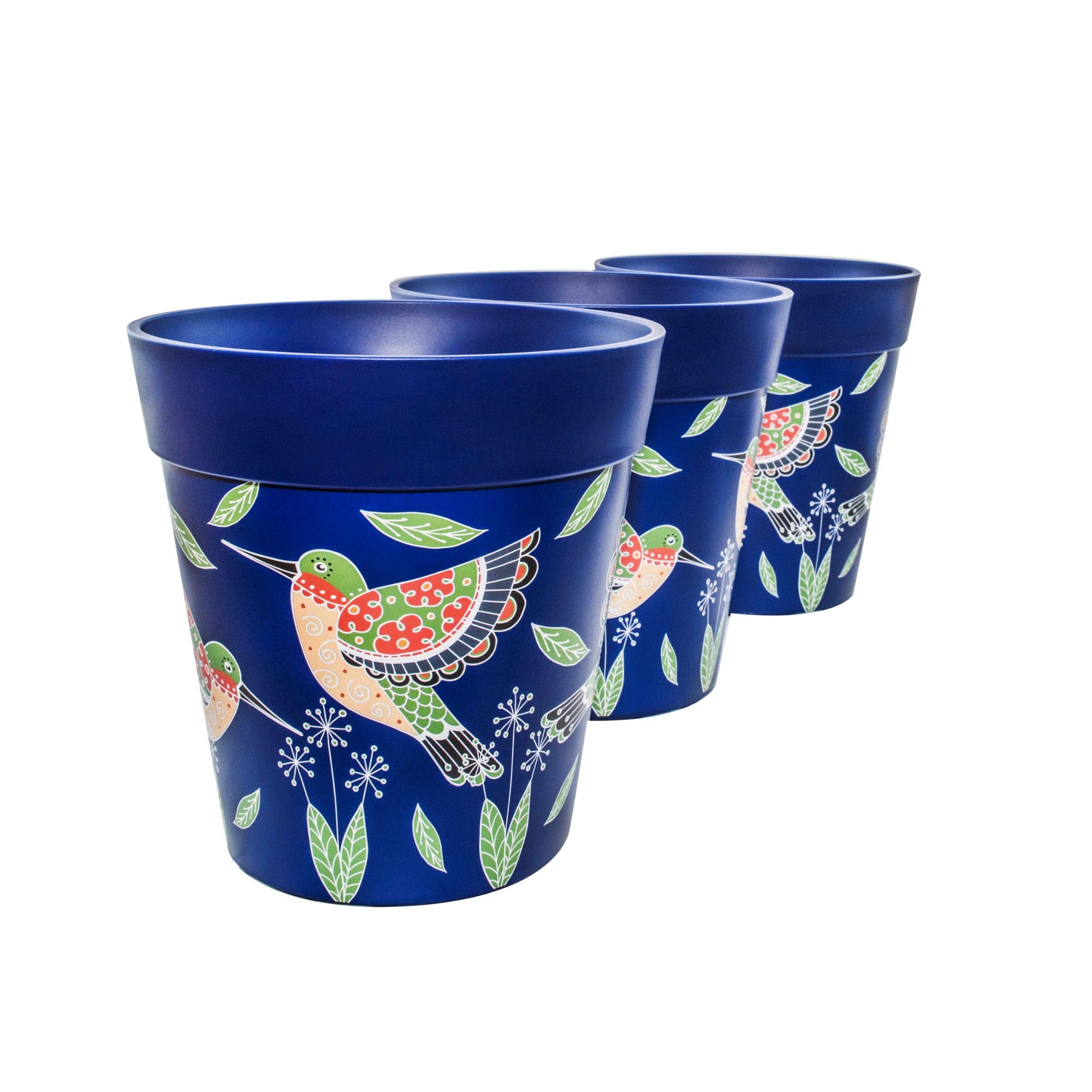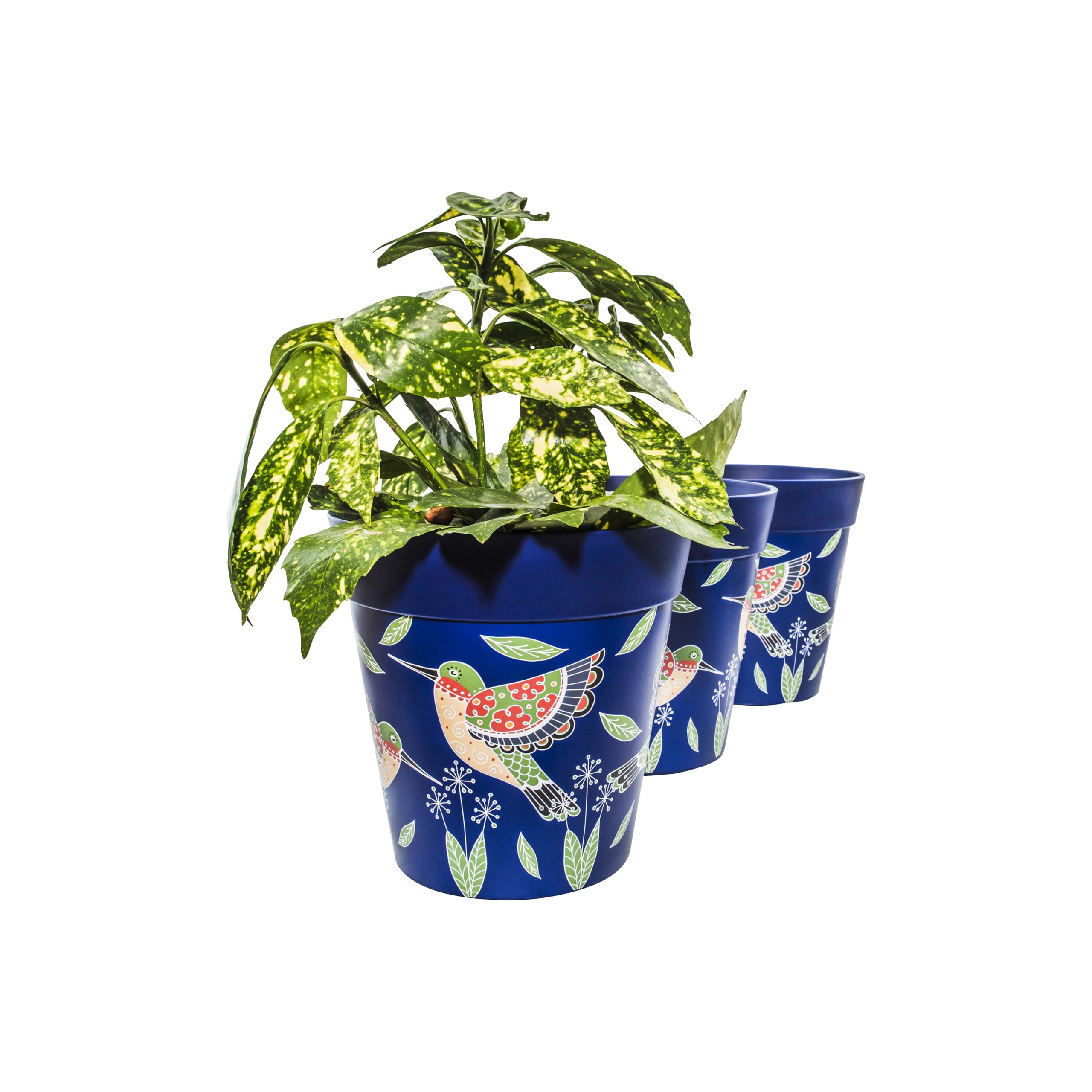 Hum Flowerpots, 22 cm, 3er-Set, in Verschiedenen Farben und Mustern, Blumentöpfe aus Kunststoff für Drinnen und Draussen, Kolibri Blau