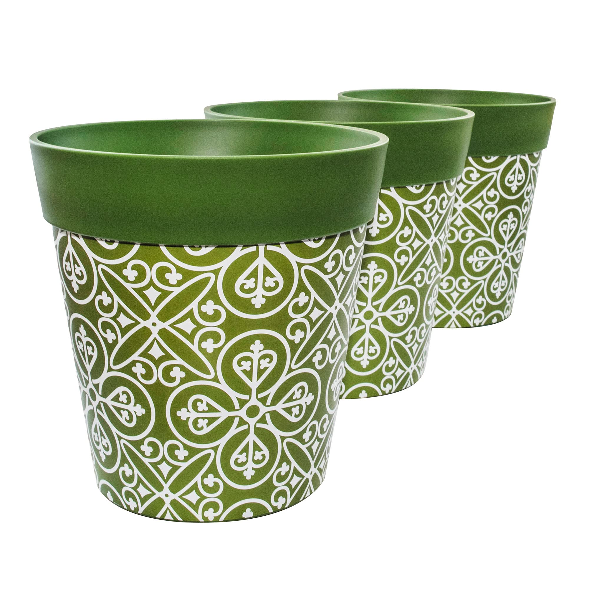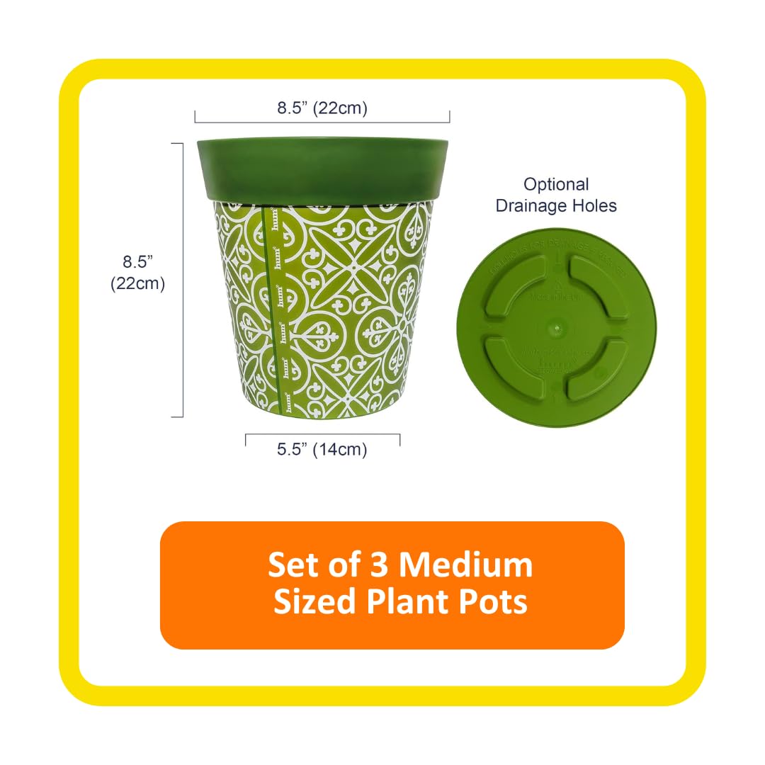 Hum Flowerpots, 22 cm, 3er-Set, in Verschiedenen Farben und Mustern, Blumentöpfe aus Kunststoff für Drinnen und Draussen, Grün Marokkanisch