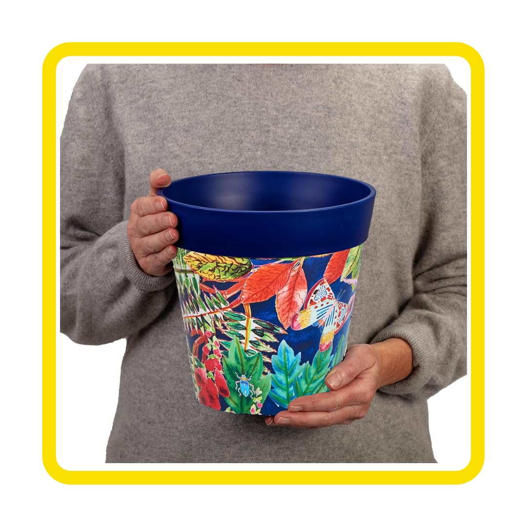 Hum Flowerpots, 22 cm, 3er-Set, in Verschiedenen Farben und Mustern, Blumentöpfe aus Kunststoff für Drinnen und Draussen, Blaue Blätter