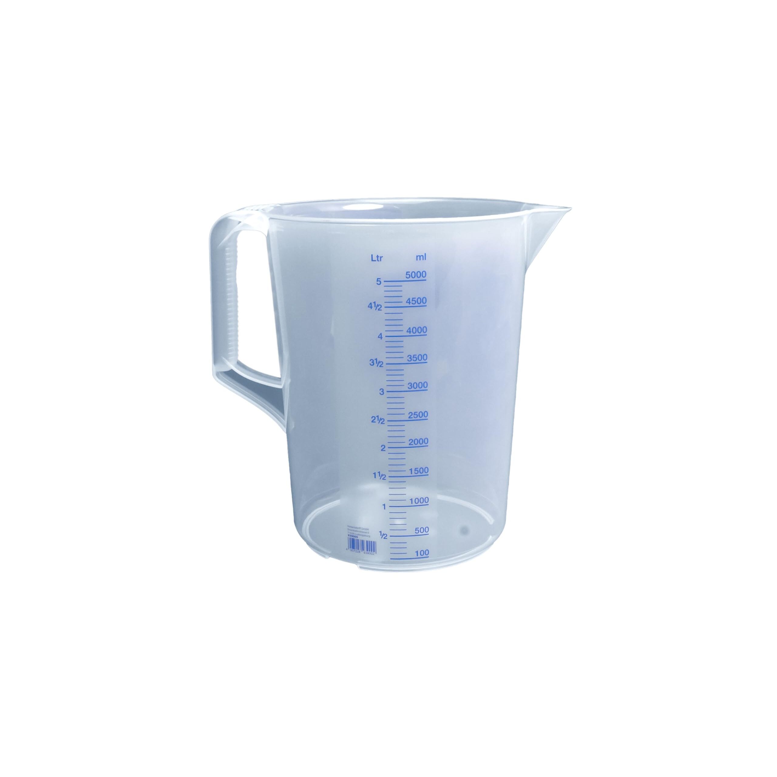 hünersdorff Messbecher 5l | Polypropylen (PP) | bruchsicher und spülmaschinengeeignet | geschlossener Griff | blaue Skala