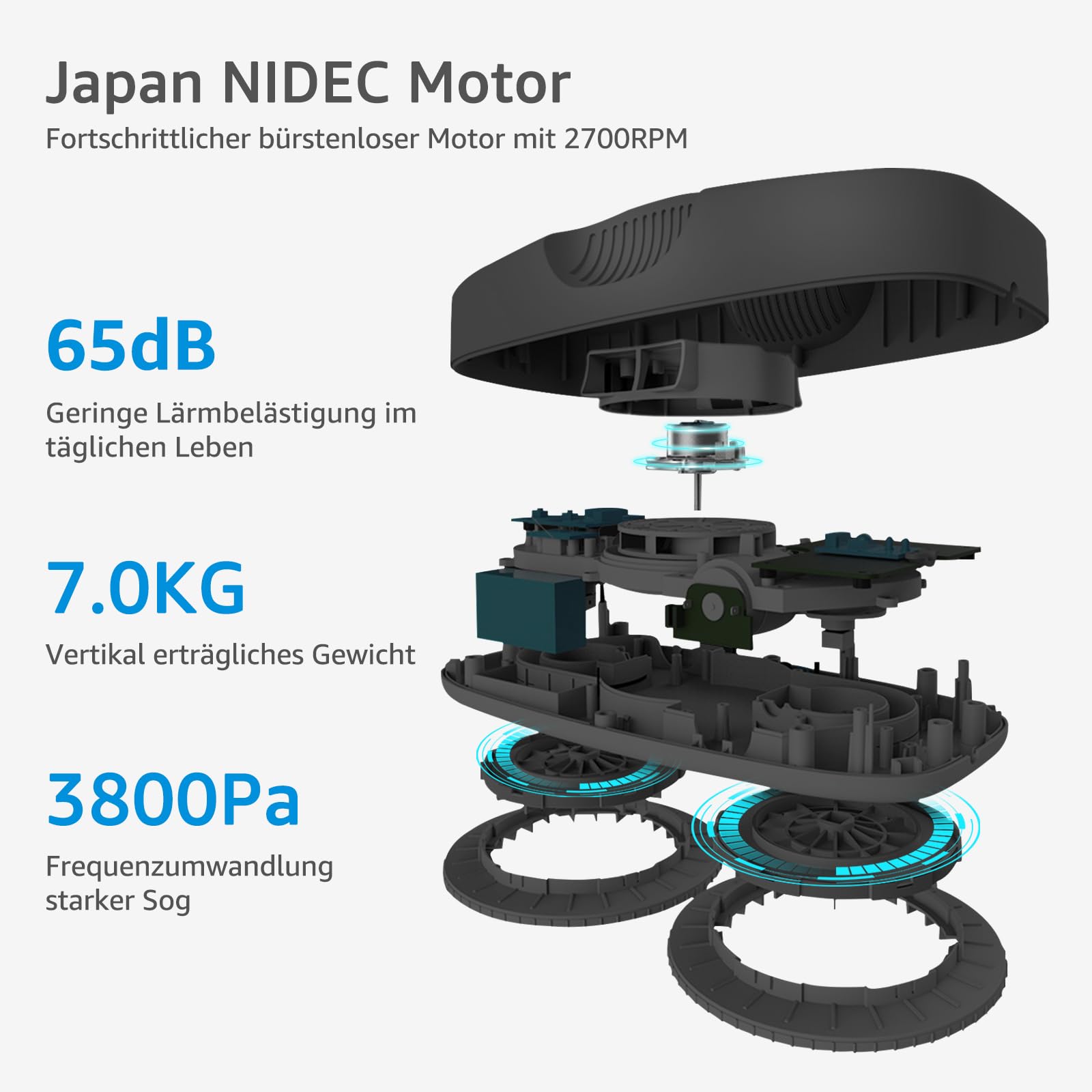 • 【Intelligente 3800Pa Saugkraft】 : Der Fensterputzroboter erkennt automatisch den Verschmutzungsgrad und passt die Saugleistung dementsprechend an. Beim Putzen des sauberen Glases erhöht sich die Saugkraft für eine bessere Reinigungswirkung. Für Glas, Fliesen, Holztür und andere glatte Oberfläche geeignet.