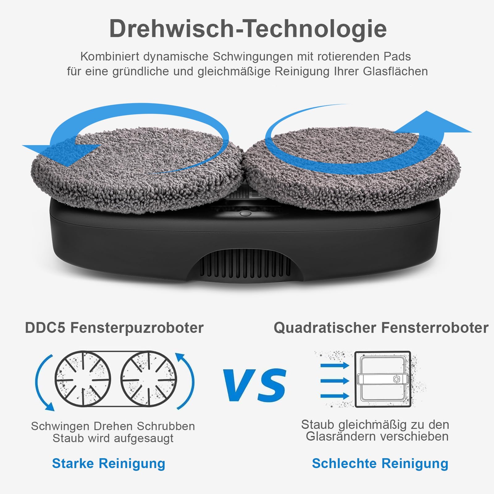 • 【Hochdichtes Nanofasertuch】: Der Roboter verwendet ein ultrafeines Mikro-Nanofasertuch, das Flecken stark blockiert und Schmutz effektiv entfernt, nicht vergossen, Glas nicht beschädigt, (Der Lappen kann zur Reinigung in die Waschmaschine gegeben werden