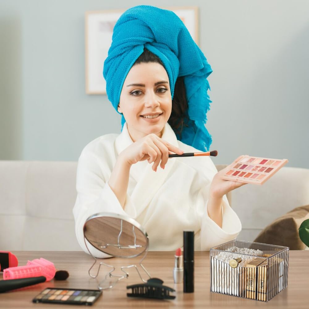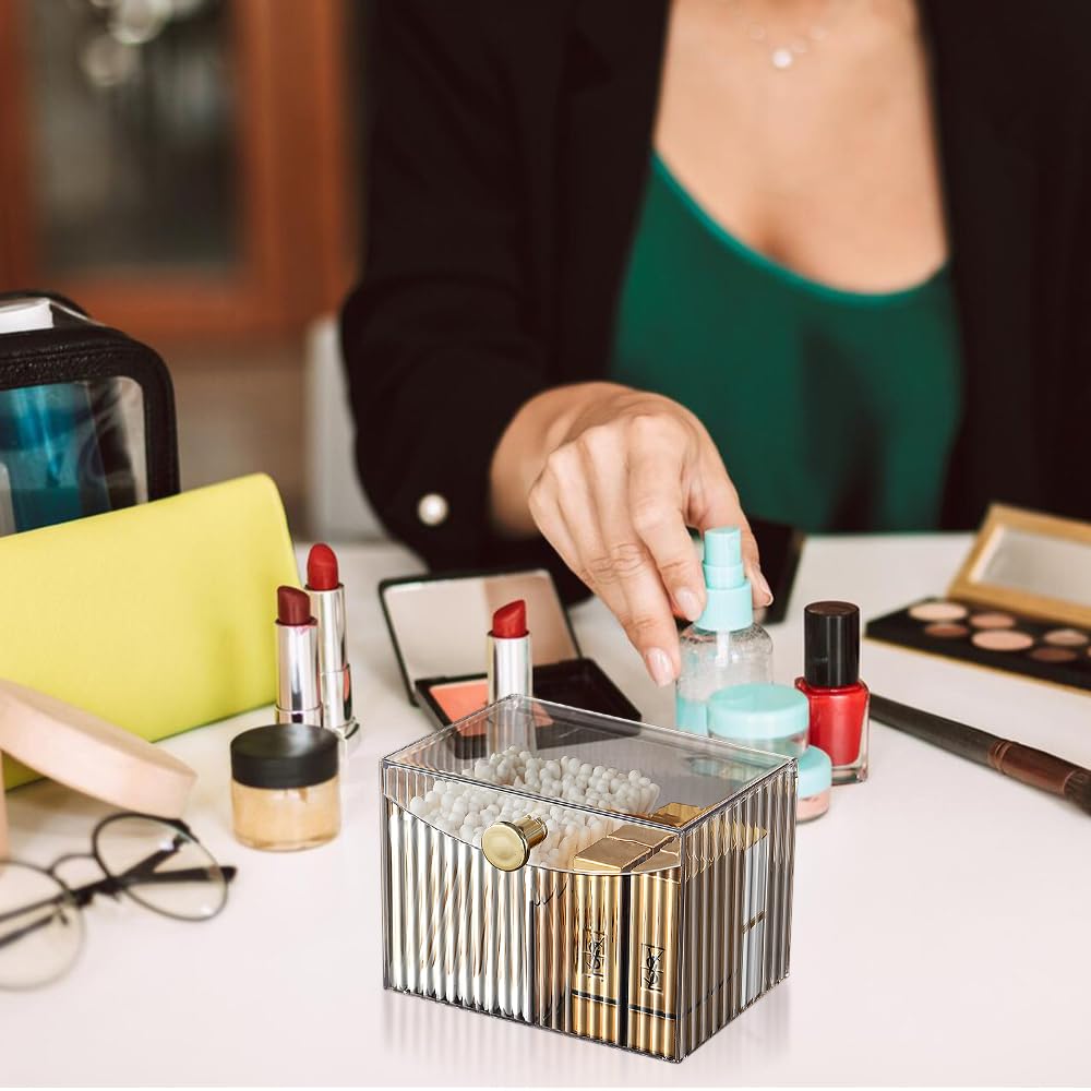 Hwtcjx Wattestäbchen Halter, Wattepad-Halter, Wattepads Aufbewahrung, Wattestäbchen Behälter mit bezug, Wattepadspender Acryl, für Wohnzimmer, Schlafzimmer, Badezimmer