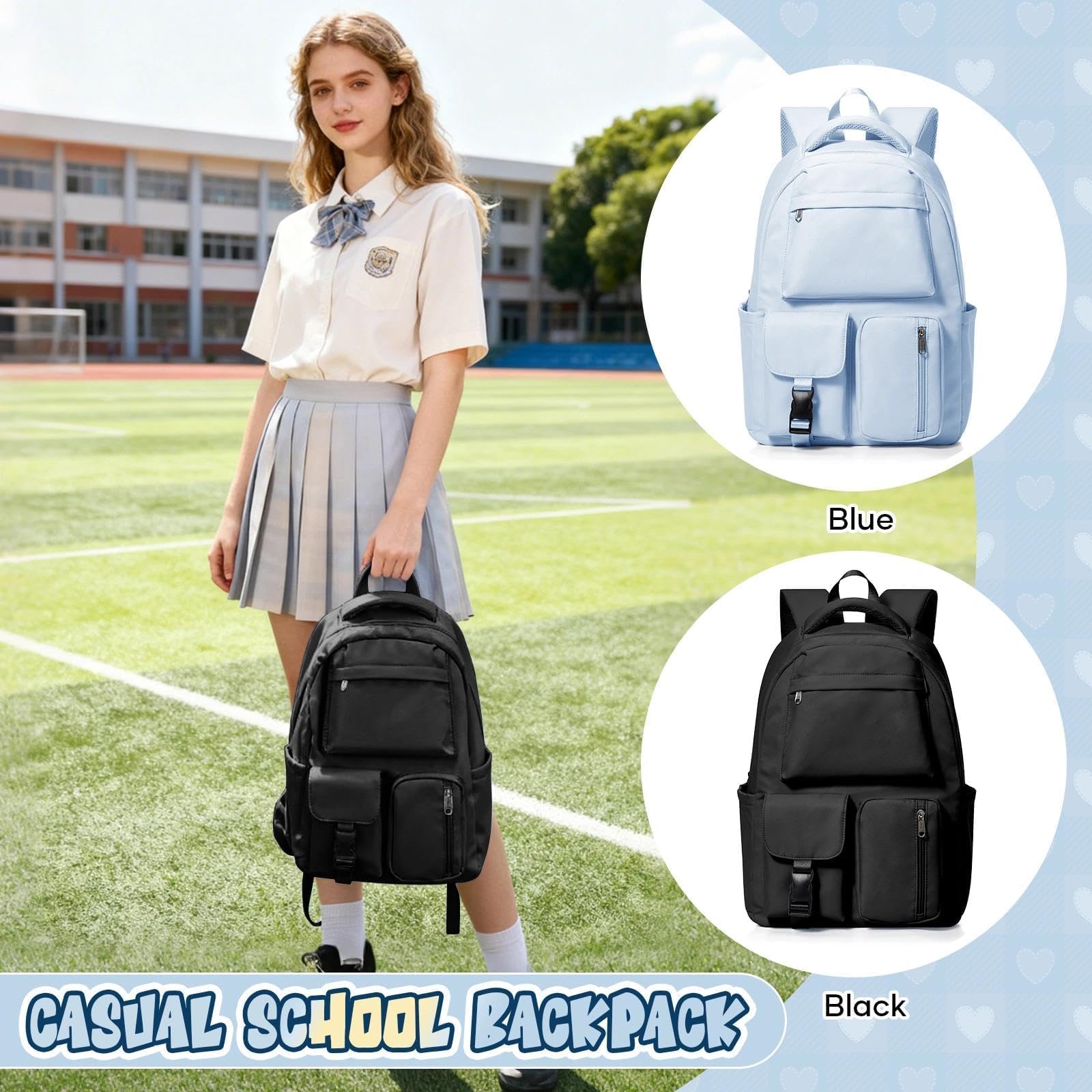 Dieser Rucksack hat ein Fassungsvermögen von ca. 19 Litern und eignet sich somit perfekt für Studenten oder den täglichen Bedarf zur Arbeit. Ob Bücher, Laptops oder andere Dinge des täglichen Bedarfs – alles lässt sich bequem transportieren. Dieser lässige Rucksack bietet dank seiner Grösse bequem Platz für einen 14-Zoll-Laptop. Er verfügt ausserdem über geräumige Hauptfächer für Bücher, A4-Ordner, eine Kamera und andere wichtige Dinge. Drei Fronttaschen eignen sich perfekt für Kleinigkeiten wie Schreibwaren, Kopfhörer und eine Powerbank. Zwei Seitentaschen bieten Platz für eine Flasche, einen Regenschirm oder Getränke und sorgen so für übersichtliche Aufbewahrung und schnellen Zugriff. Dieser Rucksack ist wasserdicht und schützt die Gegenstände im Inneren effektiv vor Feuchtigkeit. Das Material ist weich und bequem, lichtecht, abriebfest, kratzfest, leicht zu reinigen und ideal für den Langzeitgebrauch. Der leichtgängige Reissverschluss lässt sich nicht nur leicht öffnen und schliessen, sondern schützt die Gegenstände im Inneren auch effektiv vor versehentlichem Herunterfallen. Der Schultergurt besteht aus leichtem Schwammmaterial, sodass er sich auch bei voller Beladung nicht schwer anfühlt und sich daher sehr gut für längeres Tragen eignet. Gleichzeitig liegt das verdickte Schwammgriffdesign angenehm in der Hand, ohne Ihre Hände zu verletzen, was das Tragen über kurze Strecken erleichtert. Dieser Rucksack bietet viele Funktionen und ein modisches Design. Er ist perfekt für junge Leute und passt sich problemlos an verschiedene Situationen an. Ob für den täglichen Weg zur Arbeit, Outdoor-Reisen, das Studium, Geschäftsreisen oder die Freizeit – er erfüllt alle Ihre Anforderungen.