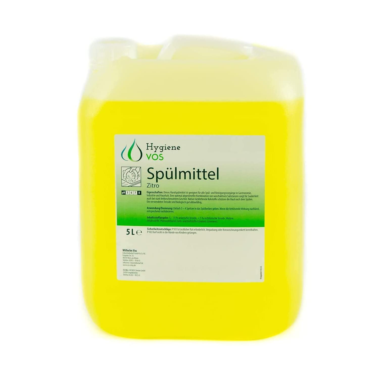 Hygiene Vos Geschirrspülmittel Zitro 5 Liter. Umweltfreundlich mit hoher Fettlösekraft. Perfektes Geschirrspülmittel flüssig für Gastronomie, Industrie und Haushalt - Zitro spülmittel 5L