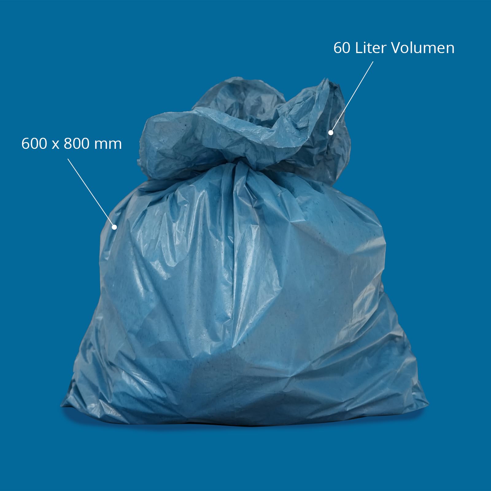 Hypafol 200 Stück reissfeste Müllsäcke | extra starke Abfallsäcke | 20 blaue Rollen | 60 L Fassungsvolumen | stabile Müllbeutel aus umwelfreundlicher Recyclingfolie