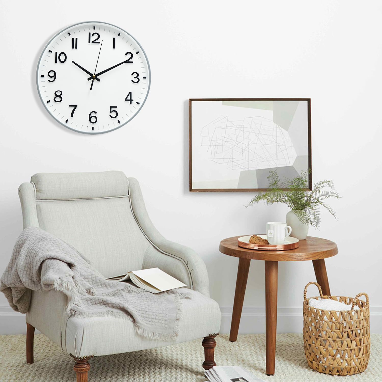 HZDHCLH 30cm Lautlos Wanduhr Schleichende Sekunde mit Arabisch Ziffer ohne Ticken für Dekoration Wohnzimmer, Küche, Büro, Schlafzimmer(Grauer Rahmen)