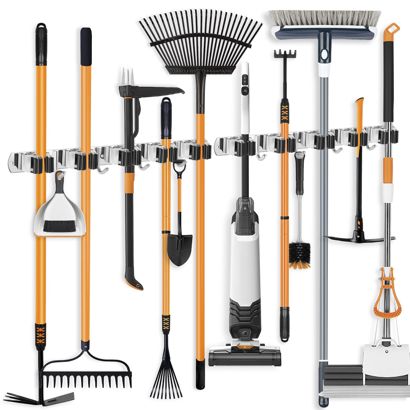 - 【Mehr Platz sparend mit 10 Schlitzen und 8 Haken insgesamt】: Haben Sie es satt, dass Stapel von Werkzeugen und Utensilien in alle Richtungen fallen? Unser Werkzeughalter sorgt dafür, dass alles an seinem Platz bleibt, während er viel Platz spart. Jeder Besen Organizer Wandhalterung hat 5 Halter und 4 Haken, die Ihnen helfen können, unordentliche Werkzeuge im Bad, Küche, Garage, Abstellraum, Waschküche, Hauswirtschaftsraum und Garten zu ordnen.