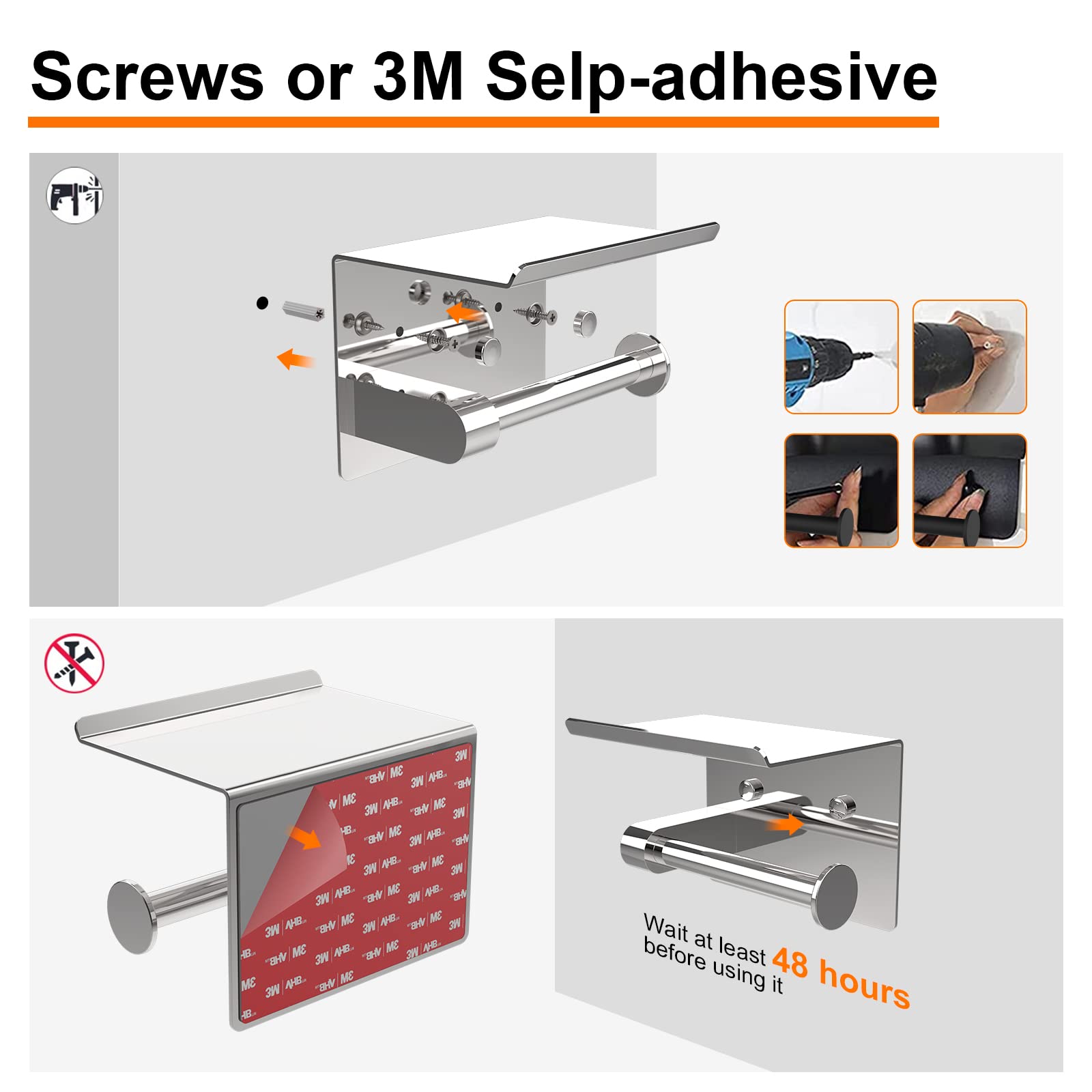 Ibergrif Toilettenpapierhalter mit 2 Montagemethoden, Klopapierhalter ohne Bohren, Klorollenhalter Wandhalterung, Toilettenpapier Halterung mit Ablage, Edelstahl, Silber
