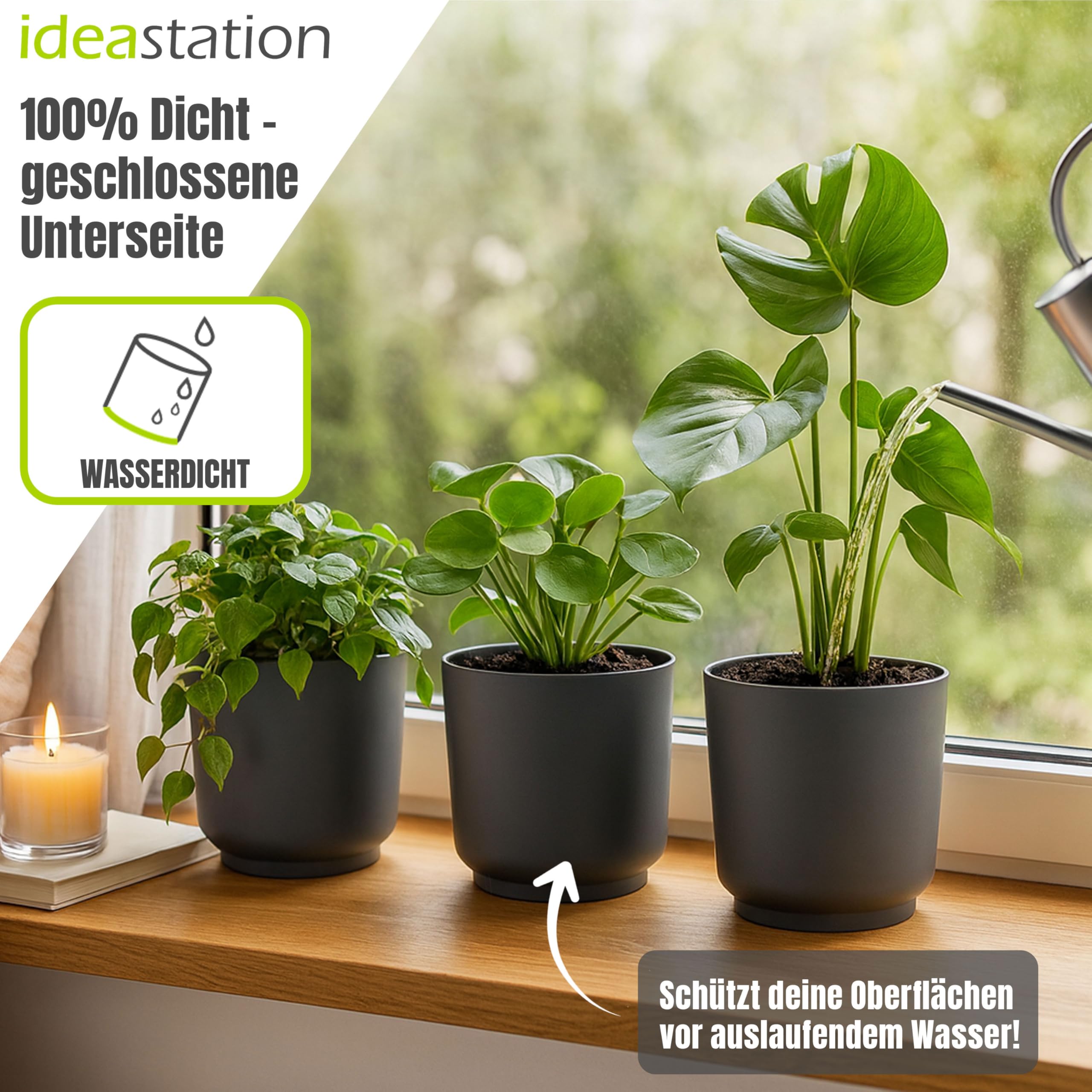 idea-station Sati Blumentopf Set 3 x 15 cm - anthrazit - Stabiler Blumentopf 15cm Durchmesser aus Plastik für verschiedenste Pflanzen und Blumen - Matte Übertöpfe für Zimmerpflanzen