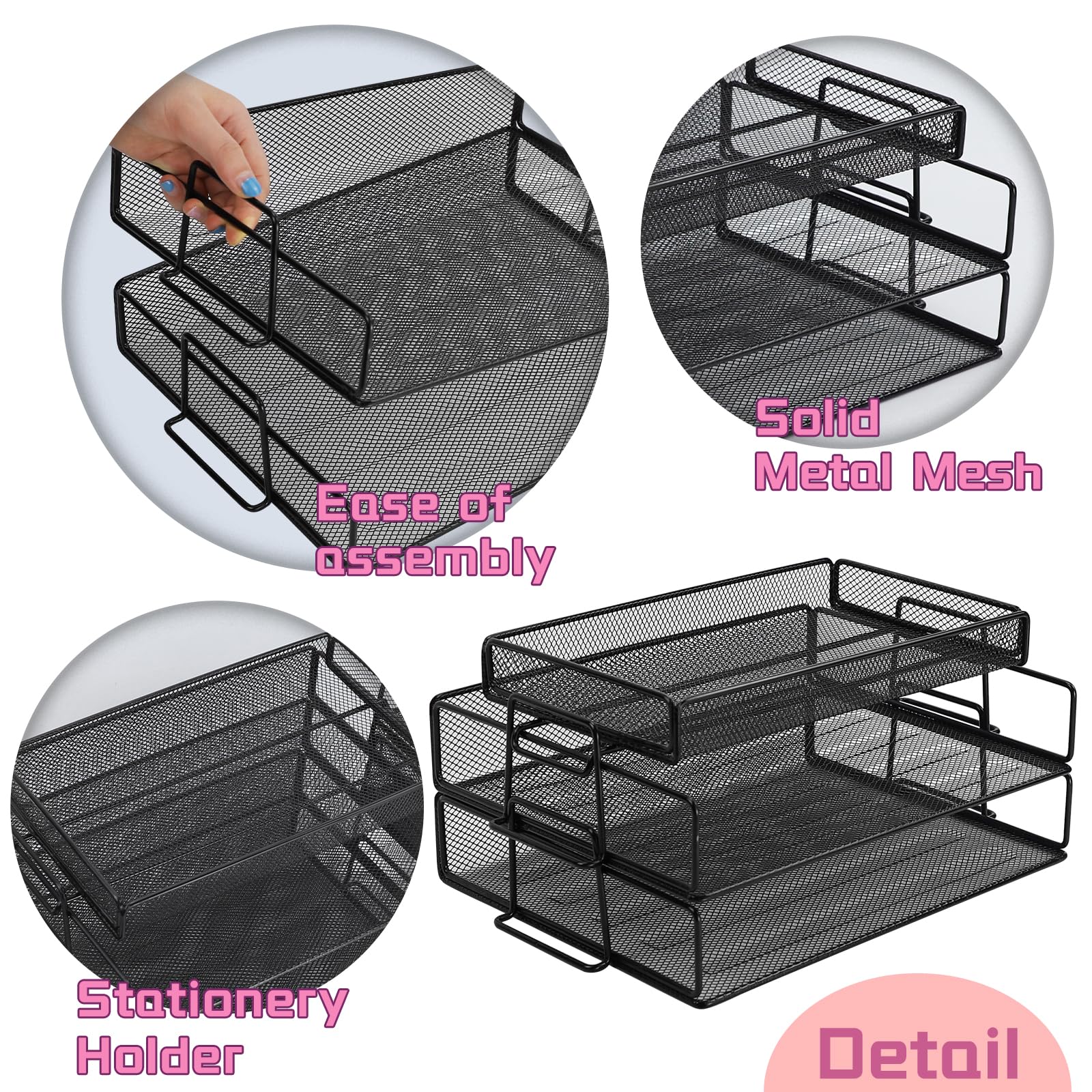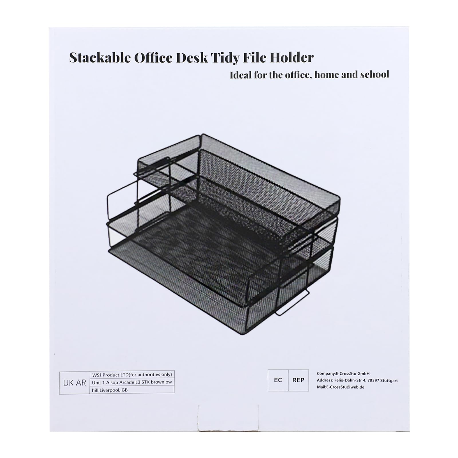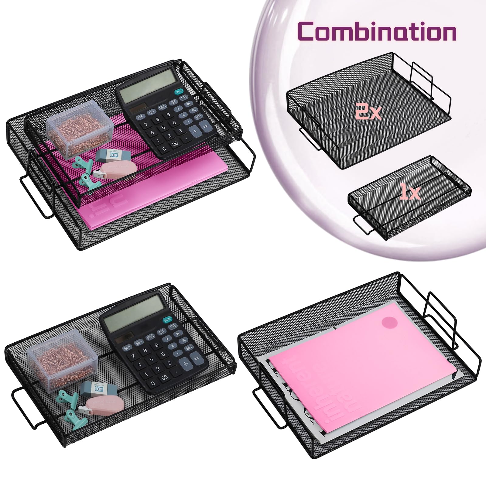 ideallife Schreibtisch Organizer mit Dokumentenablage, 2 Stück Briefablage Metall Stapelbar mit Oberes Tablett, Schreibtischablage für A4 Papier, Bürobedarf