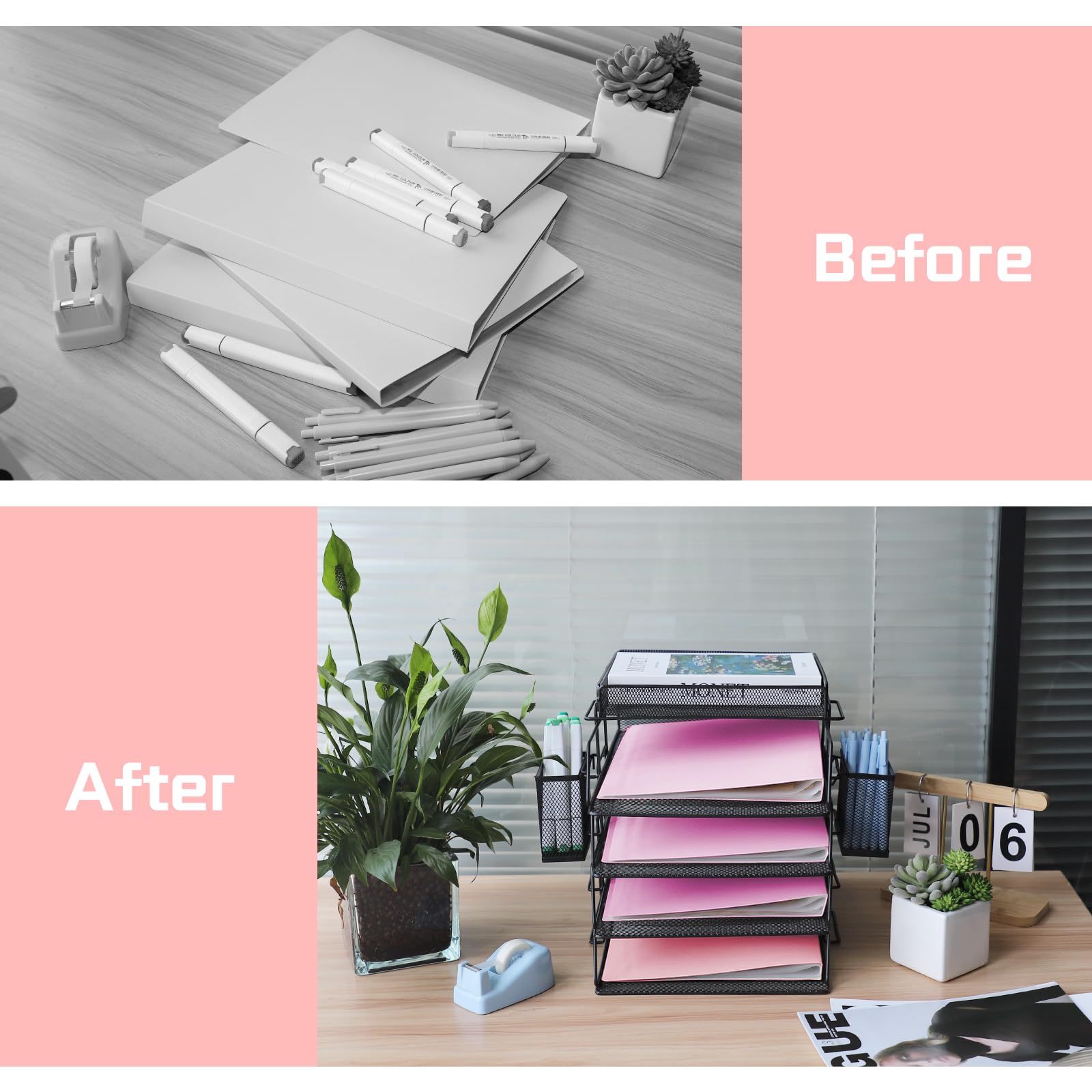 Der Schreibtisch-Organizer von ideallife hat ein 4-stöckiges Design und bietet eine stilvolle und einzigartige Aufbewahrungslösung im Vergleich zu anderen Papier-Organizern. Die Höhe der Ablage kann je nach Dateigrösse angepasst werden. Topfpflanzen und Zierpflanzen können auf das Tablett gestellt werden, um Ihren Schreibtisch zu dekorieren.