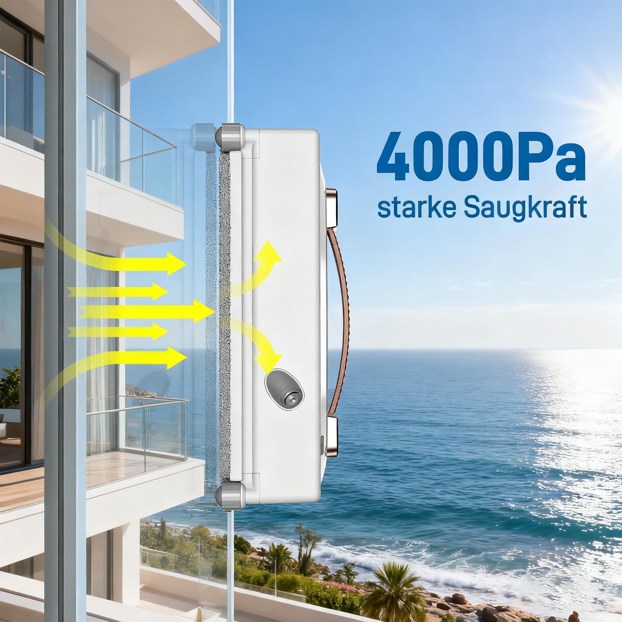 Leistungsstarke Saugeleistung: 4000 Pa für blitzsaubere Fenster