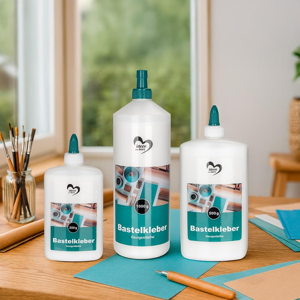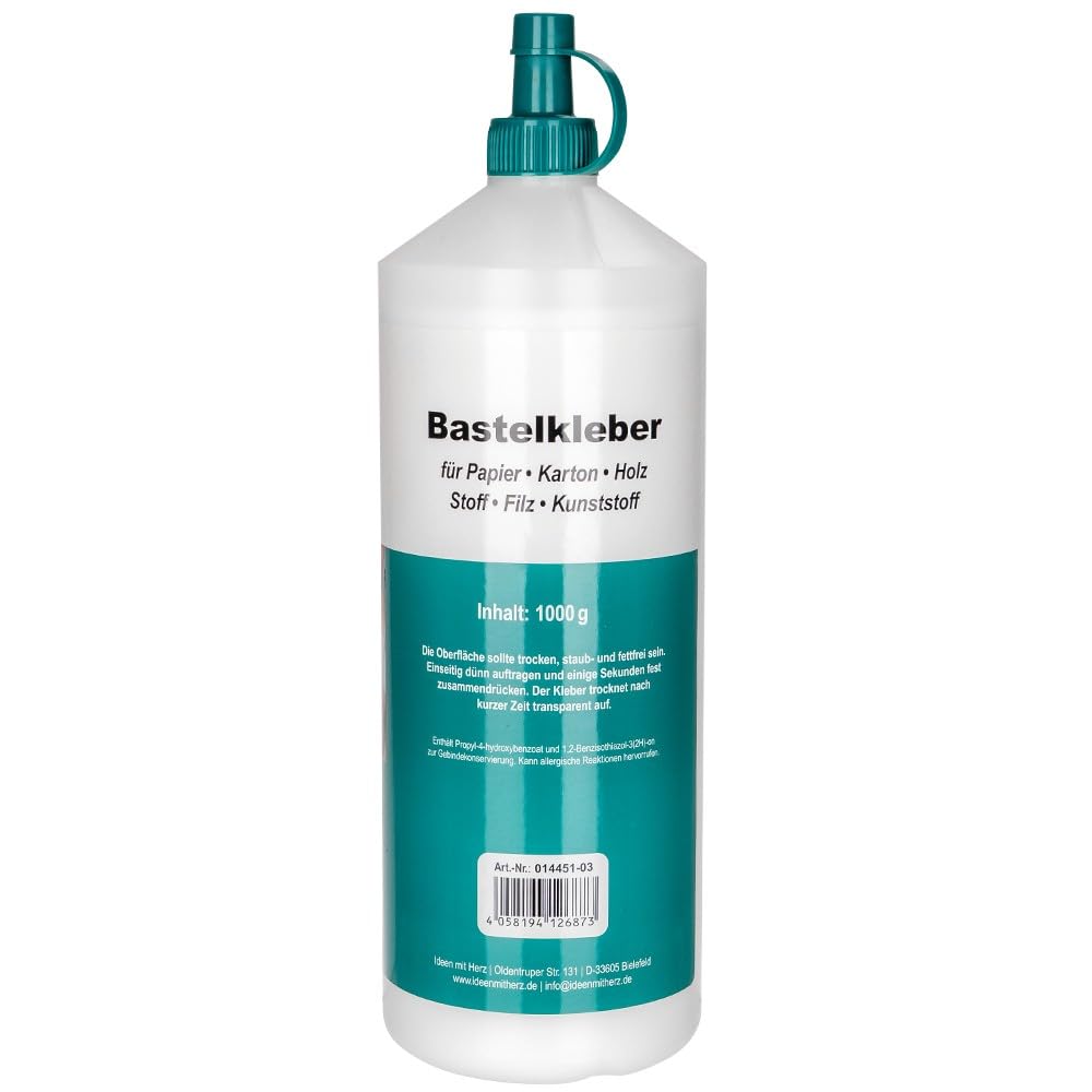 Ideen mit Herz Bastel-Kleber | flüssig Leim | auf Wasserbasis | lösungsmittelfrei | trocknet transparent | geeignet für Kinder | ideal für Holz, Papier, Fotos, Filz, Pappe, Textilien (1000 ml)