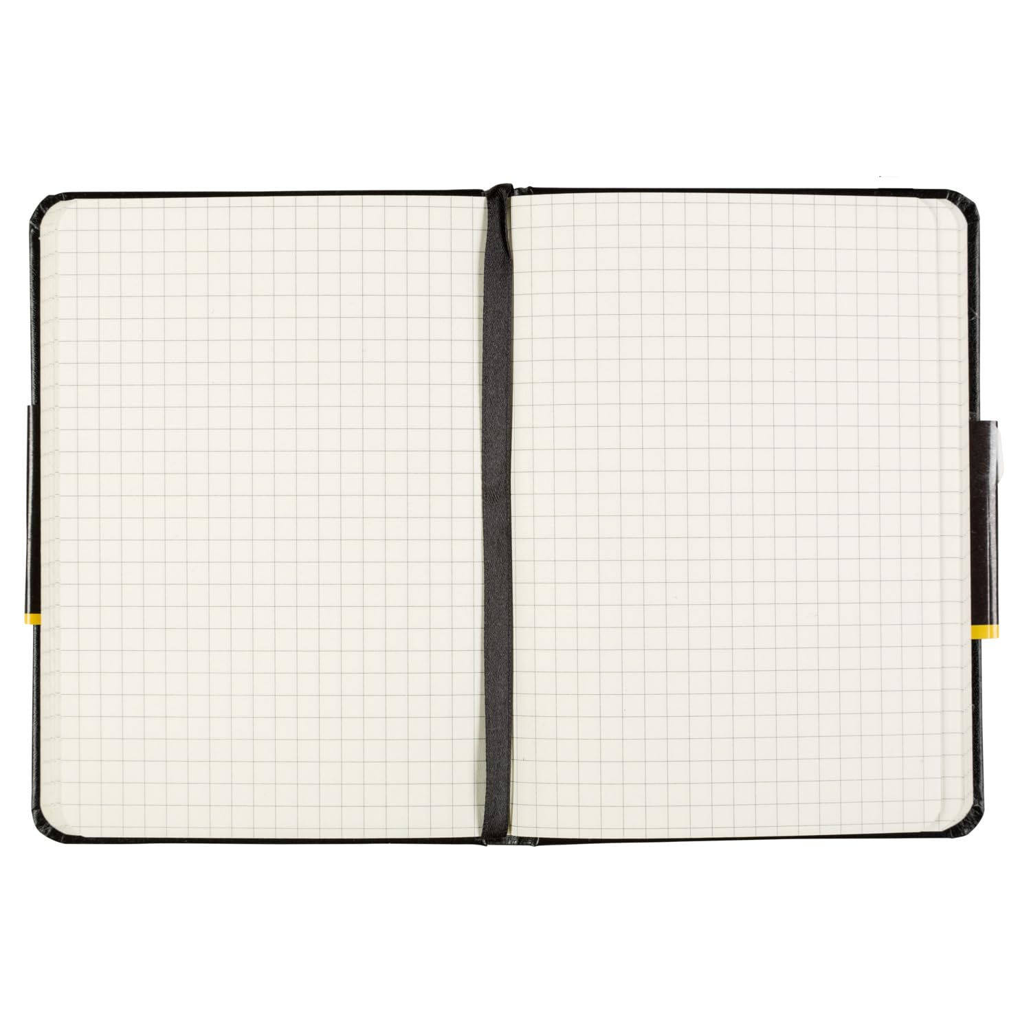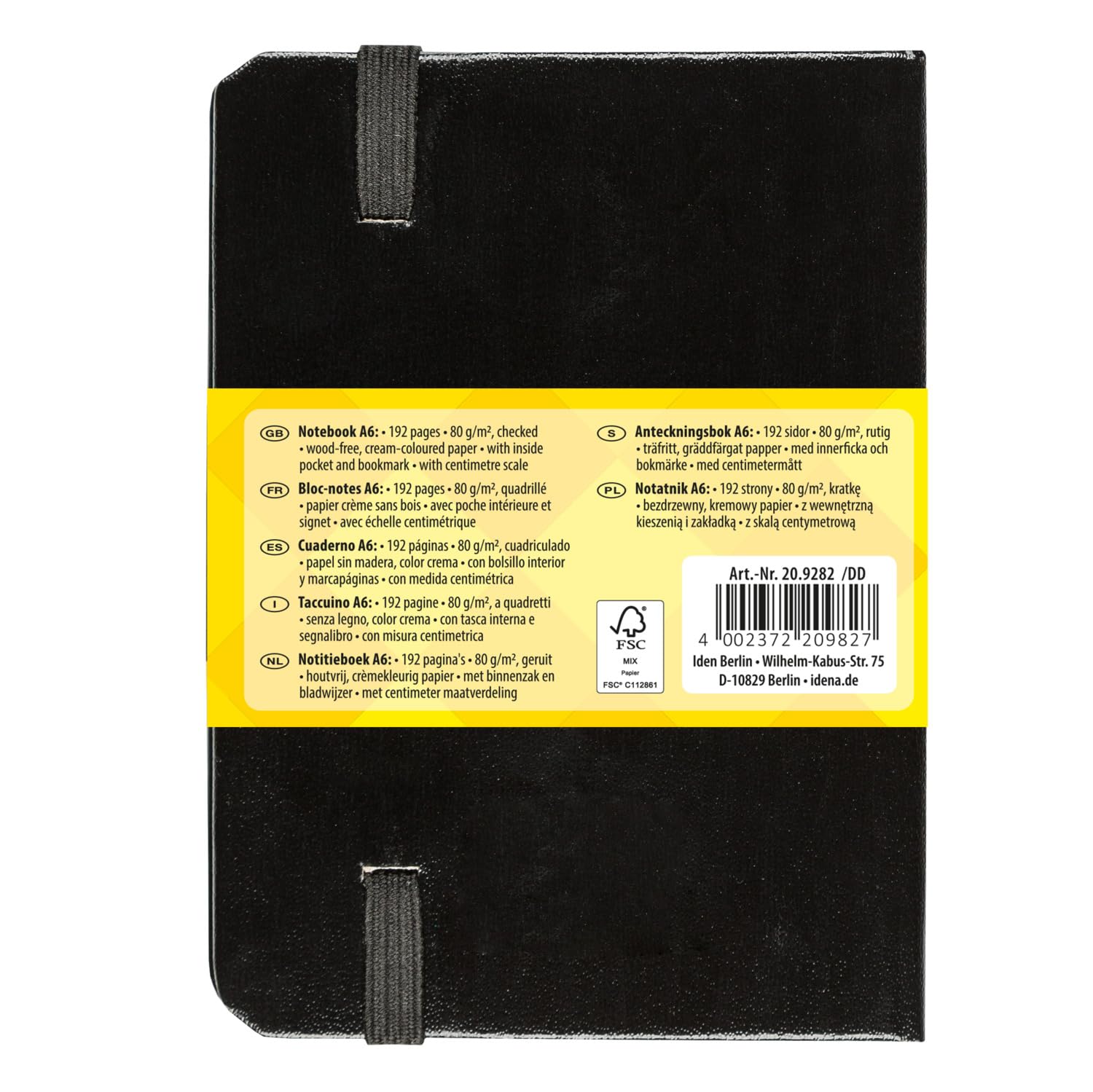 - Es ist mit einem schwarzen Gummiband verschliessbar und verfügt über ein schwarzes Hardcover mit Kunstlederbezug