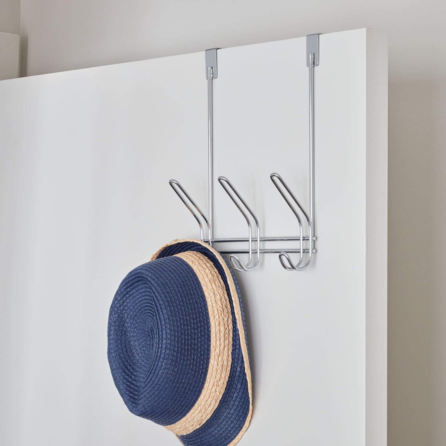 Kompakte Türgarderobe mit drei DoppelhakenWarum InterDesign? InterDesign bringt Innovation, Stil und Organisation mit einer breiten Auswahl an Produkten zu Ihnen nach Hause. Unser Ziel ist dabei die Verbesserung und Verschönerung Ihrer Wohnumgebung. Wir lassen uns von aktuellen Modetrends inspirieren und ergänzen die Kollektionen mit praktischen und funktionalen Designs. Entdecken Sie jetzt unsere grosse Auswahl an Produkten für Bad, Küche, Schlafzimmer und mehrÜber die Classico-Serie: Bei dieser Serie überzeugen stilvolle Stauraumhelfer durch ihr klassisches und dennoch zeitgemässes Design Die dezent gehaltenen Produkte bestehen vor allem aus Metall und sorgen so für einen langlebigen sowie zuverlässigen Gebrauch im ganzen Zuhause. Platzsparende Hakenleiste: Diese Garderobenleiste wird spielend einfach über die Tür gehängt und bietet so sofortige zusätzliche Hängeaufbewahrung. An ihren drei Doppelhaken finden Jacken, Hüte, Taschen, Bademäntel aber auch Handtücher ausreichend Platz. Dank ihrer modernen Metallausführung in Chrom wird die Hängegarderobe sowohl im Flur als auch im Bad, Schlafzimmer oder im Schrank eine optisch ansprechende Figur machen.Artikelnummer: 43912EUMaterial: MetallMasse: 12,7 cm x 20,8 cm x 31,8 cm