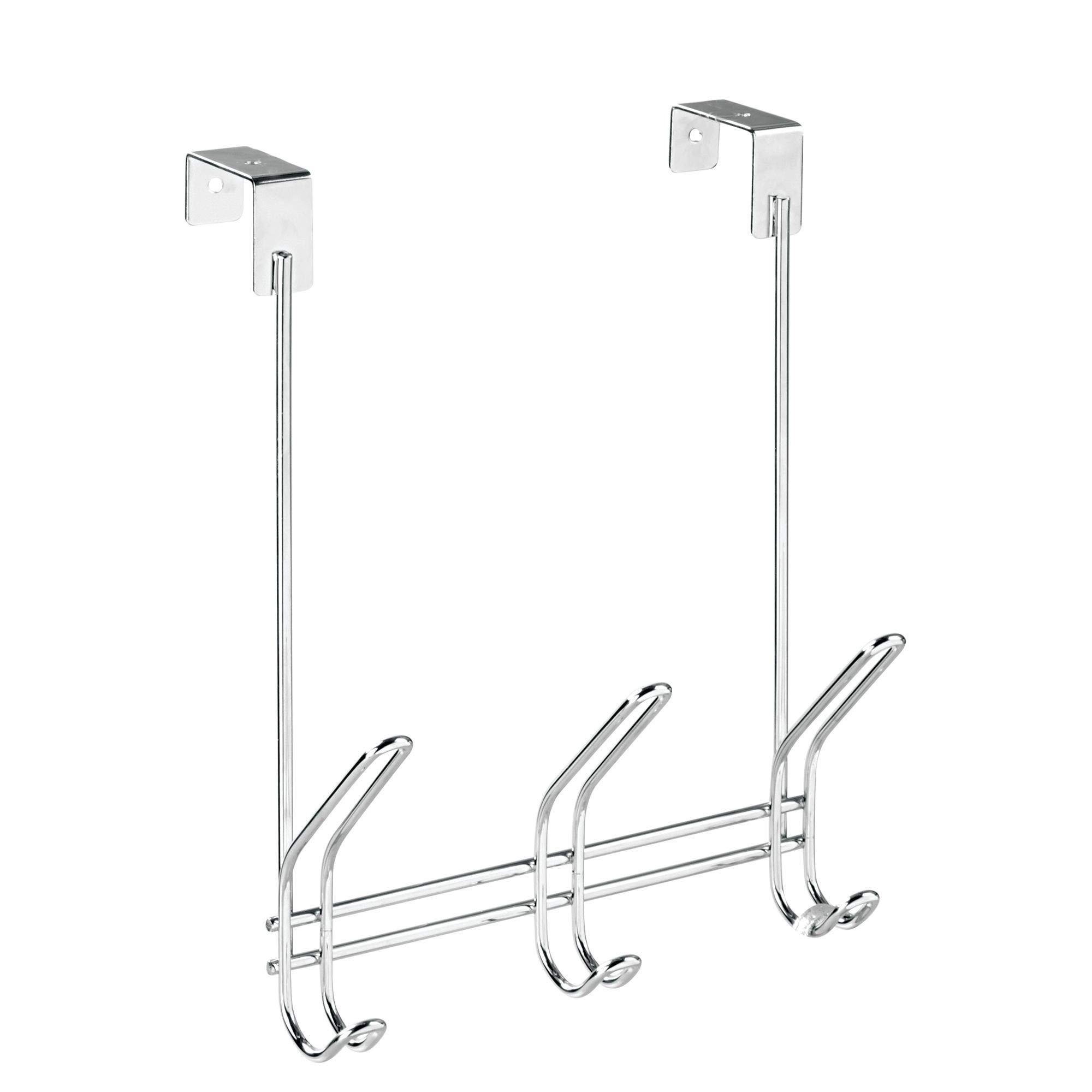 iDesign Classico Türgarderobe mit 3 Doppelhaken, Garderobenleiste für Jacken, Hüte, Schals oder Handtücher aus Metall, silberfarben