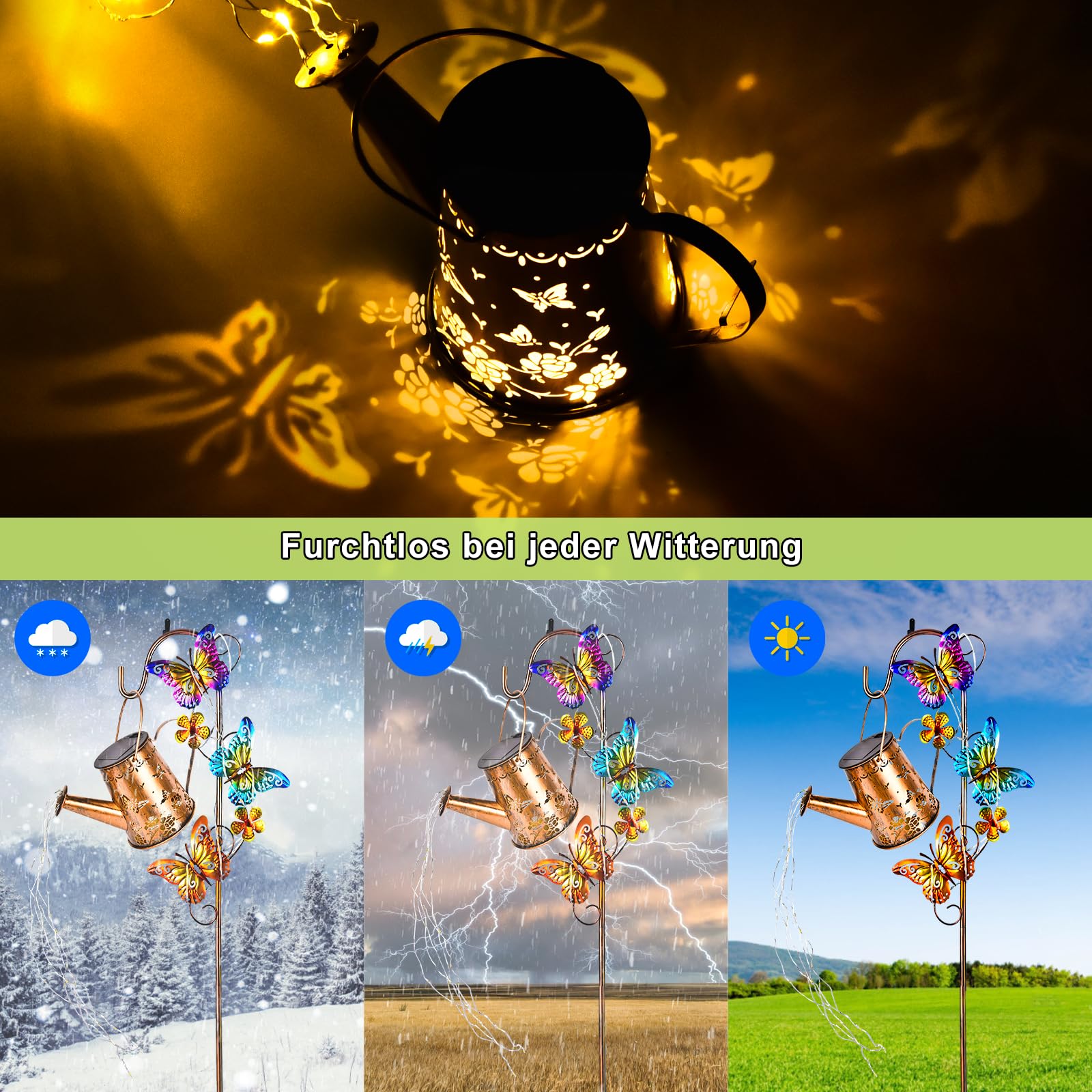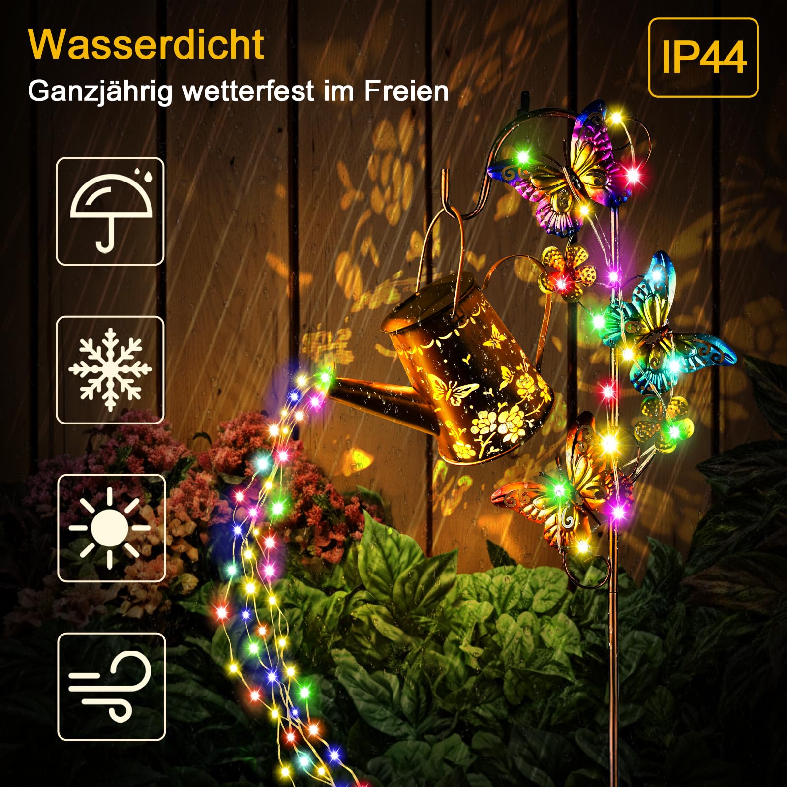 IEEILULU Solar Giesskanne Lampe, Solarlampen mit Lichterkette Giesskanne, Wasserdicht solar giesskanne für aussen mit Ständer, LED Solarbetriebene für Aussen Licht für Weg, Gehweg, Garten, Terrasse (Warm)