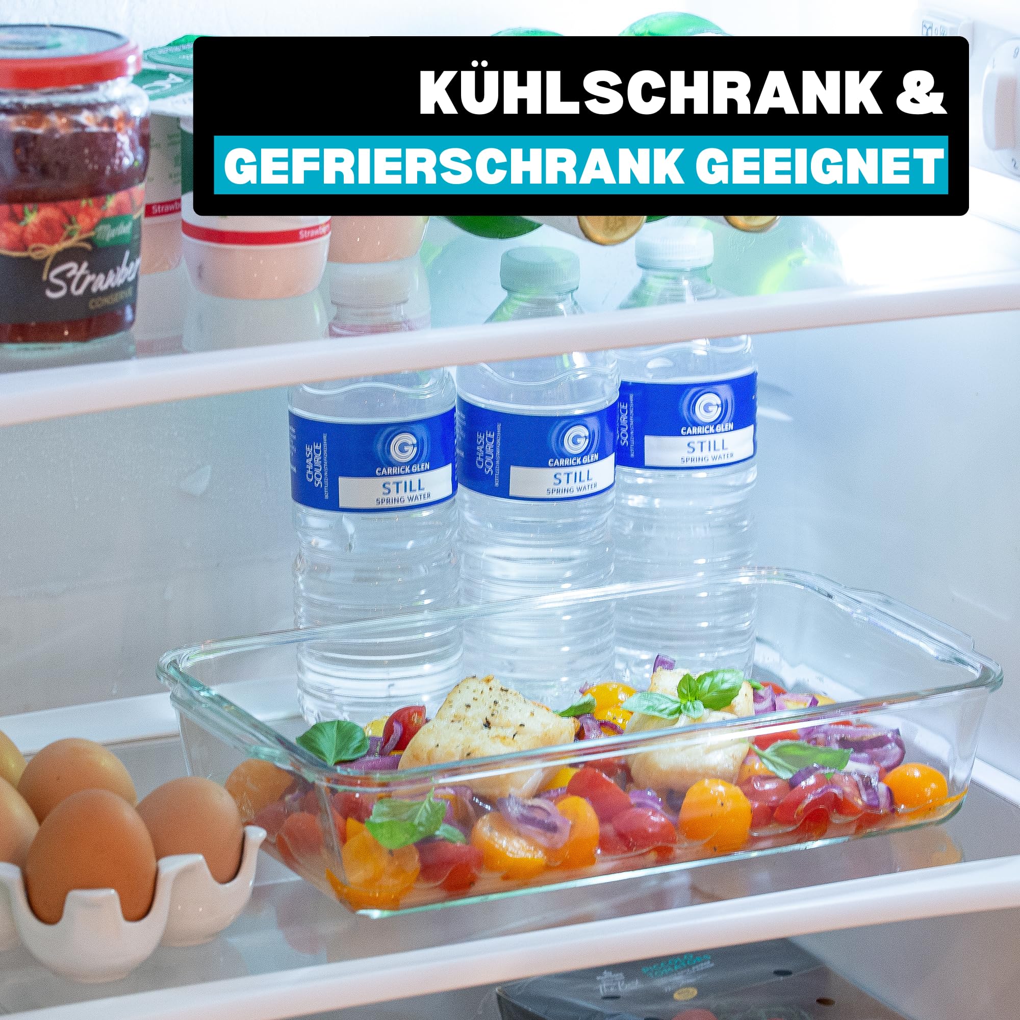 Wie viel einfacher wäre Ihre Woche, wenn Sie eine Lösung für die Aufbewahrung und Zubereitung von Lebensmitteln in Mikrowellenbehältern ohne Kunststoff hätten oder Ihre Mahlzeit im selben Vorratsbehälter im Ofen kochen und danach leicht reinigen - ohne Angst zu haben, dass Chemikalien in Ihre Mahlzeit gelangen? Seien Sie bereit für die Woche mit diesem Igluu Meal Prep Lebensmittelbehälter aus Glas. Eine 2,2 l Glas-Backform, ein verschliessbarer Deckel mit abnehmbaren Dichtungen geben Ihnen alles, was Sie brauchen, um eine schöne hausgemachte Mahlzeit zuzubereiten, die für die Woche bereit ist. Frische: Mit dem LockTab-System können Sie sicher sein, dass unangenehme Bakterien hier draussen bleiben und Ihre nächste Mahlzeit darin bleibt. Zeit zum Essen: Für Lebensmittelsparer macht Sie dieser Aufbewahrungsbehälter immer bereit. Entfernen Sie den Deckel und stellen Sie den Behälter in den Ofen und servieren Sie Ihre köstliche Mahlzeit. Reinigung: Nachdem Sie Ihre Mahlzeit genossen haben, werfen Sie den Behälter einfach in die Spülmaschine (Deckel im oberen Geschirrkorb) oder waschen Sie ihn schnell in der Spüle, um ein brandneues Aussehen, Gefühl und Geruch zu erzielen, ohne die Unannehmlichkeit, die in Kunststoffbehältern zurückbleiben kann. Sie können sogar das Siegel selbst entfernen und waschen! Erreichen Sie Ihre Ziele: Jetzt können Sie Ihre Ernährung leicht beibehalten, erstellen Sie einfach einen wöchentlichen Mahlzeitenplan, lassen Sie Chargen kochen und den Behälter einfrieren oder kühlen, bis er benötigt wird. Alternative zu Kunststoff: Vom Geruch über das Aussehen bis hin zu gesundheitlichen und ökologischen Vorteilen, Glas erledigt die Arbeit.
