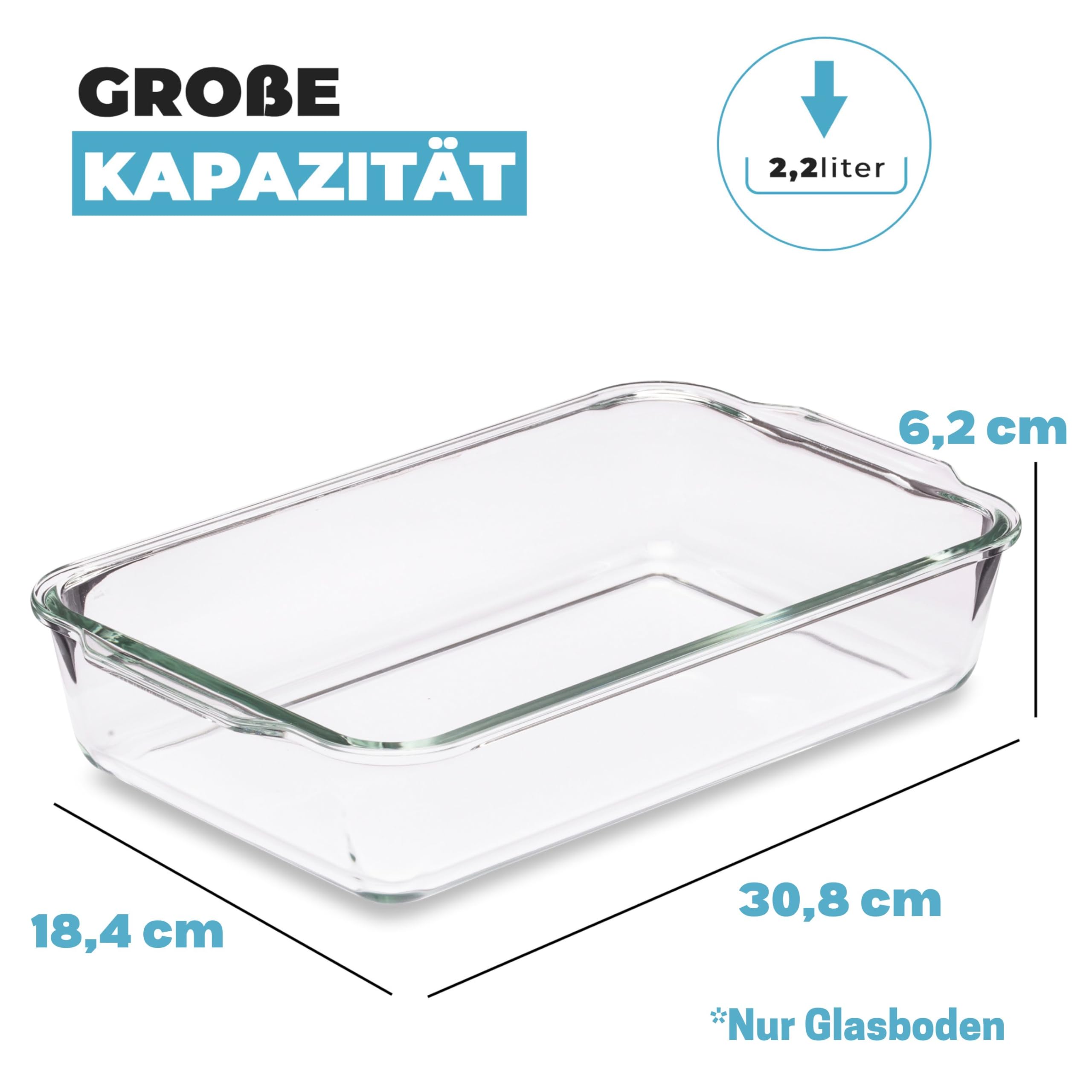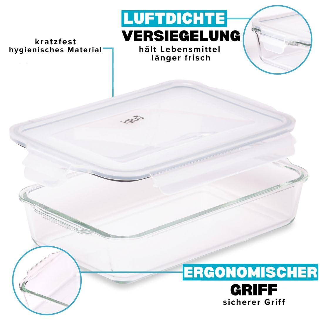 Igluu Meal Prep Lasagne-Auflaufform mit BPA-freiem Schnappverschluss-Deckel - 2,2 Liter (1-teilig) – rechteckige, robustes Borosilikatglasform – ofen-, mikrowellen-, gefrier- & spülmaschinengeeignet