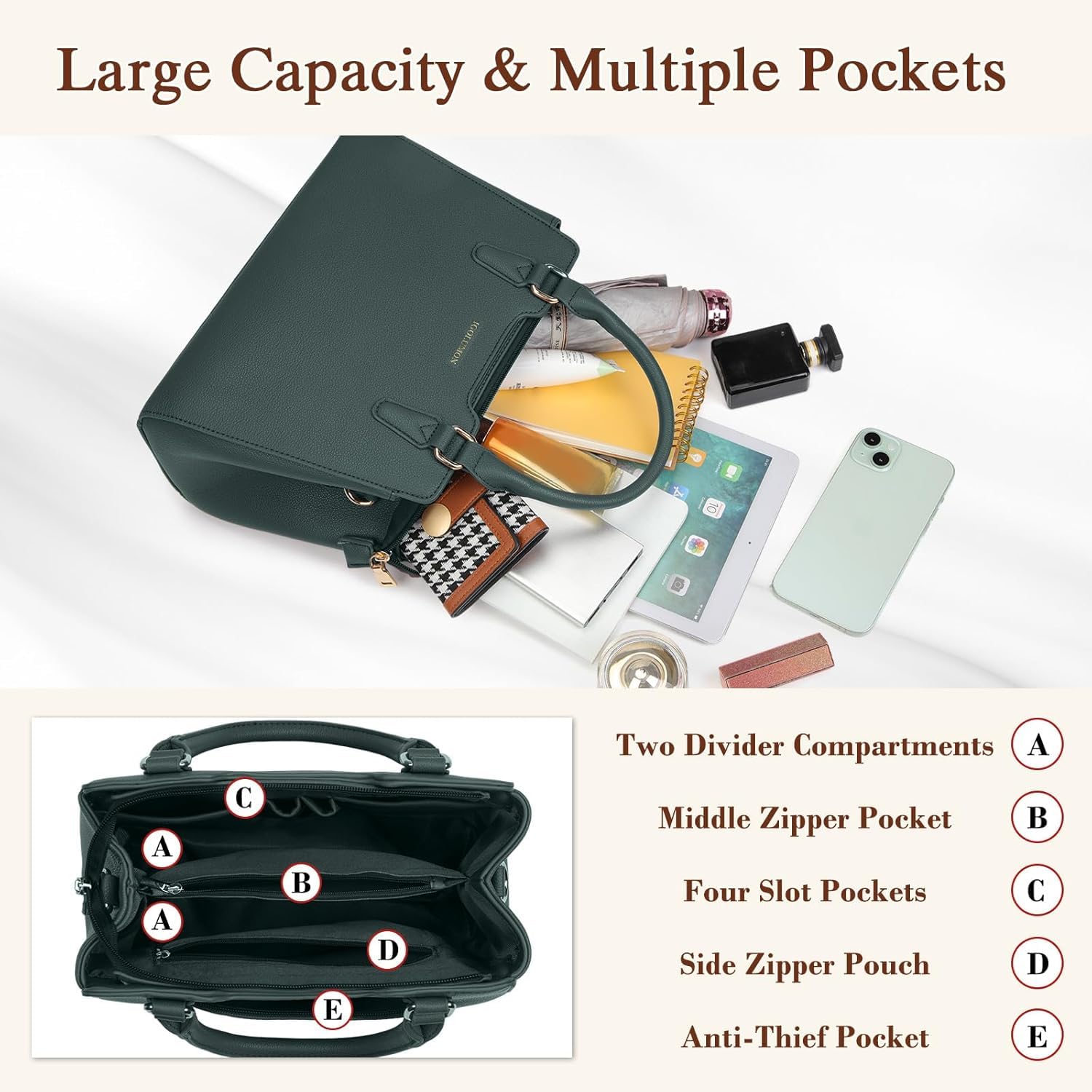 IGOLUMON Handtasche Damen Mittelgross Tasche Leder Henkeltasche Damen-Henkeltaschen Tote Bag Handtaschen Taschen Schultertaschen Umhängetasche Schultertasche Damenhandtaschen Dunkelgrün