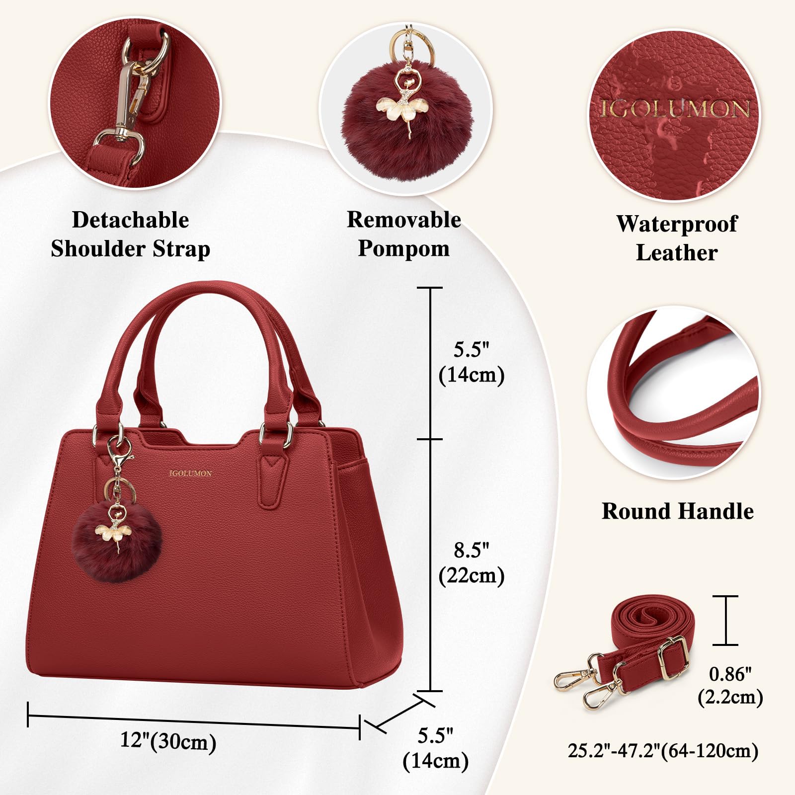 IGOLUMON Handtaschen für Damen, PU-Leder, Top-Griff, Designer-Handtaschen für Frauen, Anti-Diebstahl, Tragetasche mit Pompon