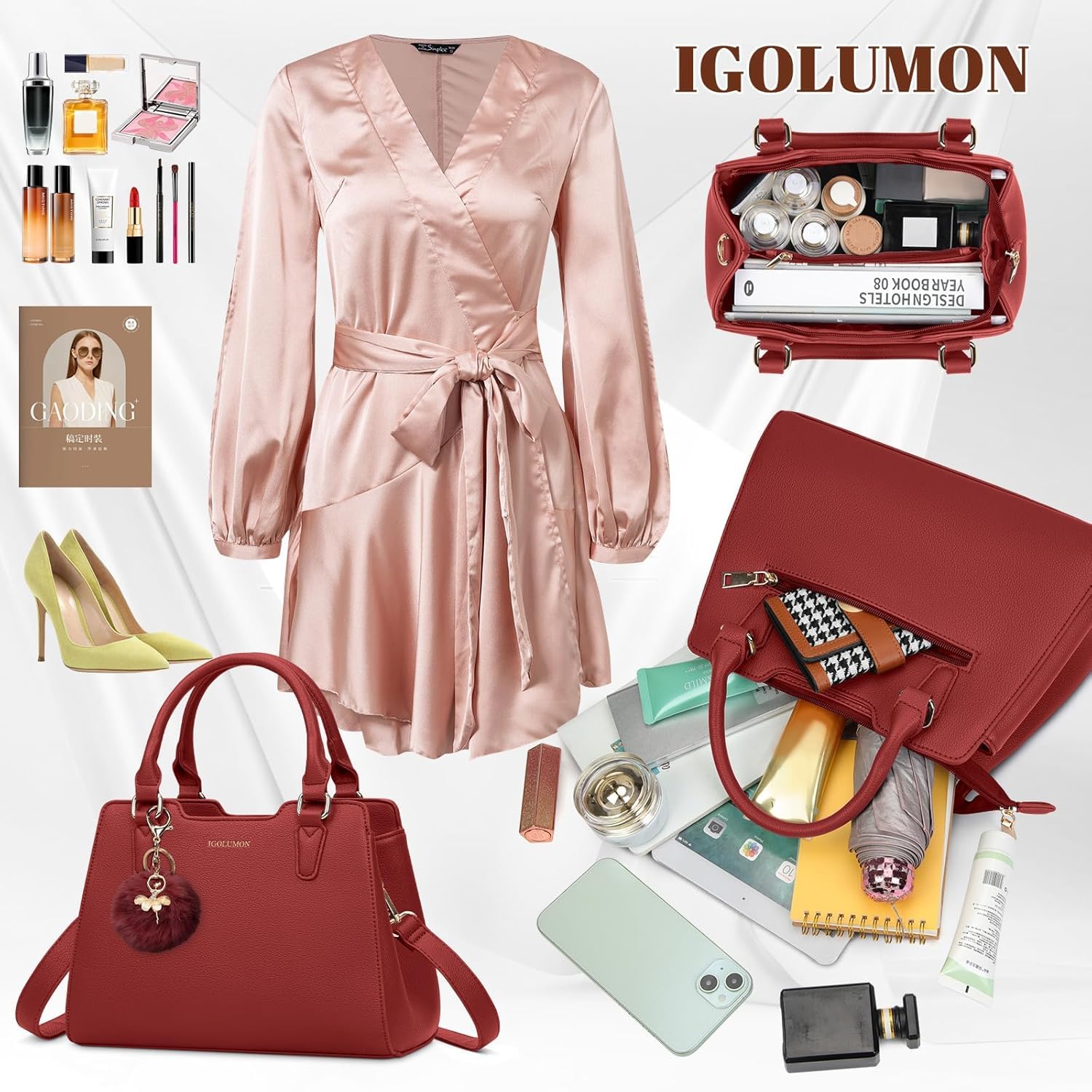 IGOLUMON Handtasche Damen Mittelgross Tasche Leder Henkeltasche Damen-Henkeltaschen Tote Bag Handtaschen Taschen Schultertaschen Umhängetasche Schultertasche Damenhandtaschen Rot