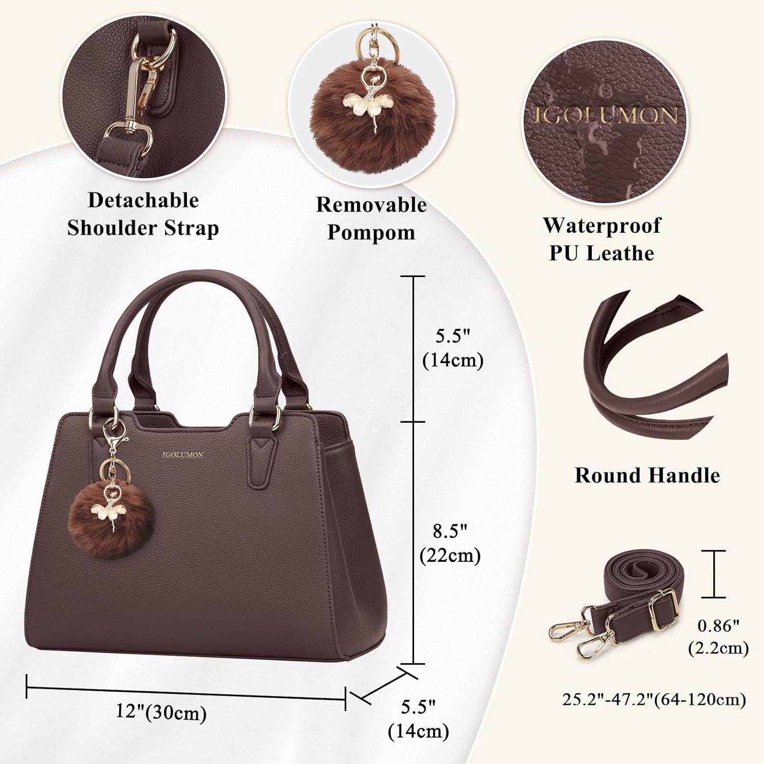 - Mode & Luxus: Der süsse abnehmbare Pompon verleiht unseren Leder Handtaschen Damen einen exquisiten Touch. Mit klassischem Litschi-Musterleder und dem bronzefarbenen IGOLUMON-Logo strahlen diese Damen Handtaschen Luxus aus. IGOLUMON Handtaschen Damen verbinden trendige Mode mit zeitloser Eleganz und sind für jedes Alter geeignet.