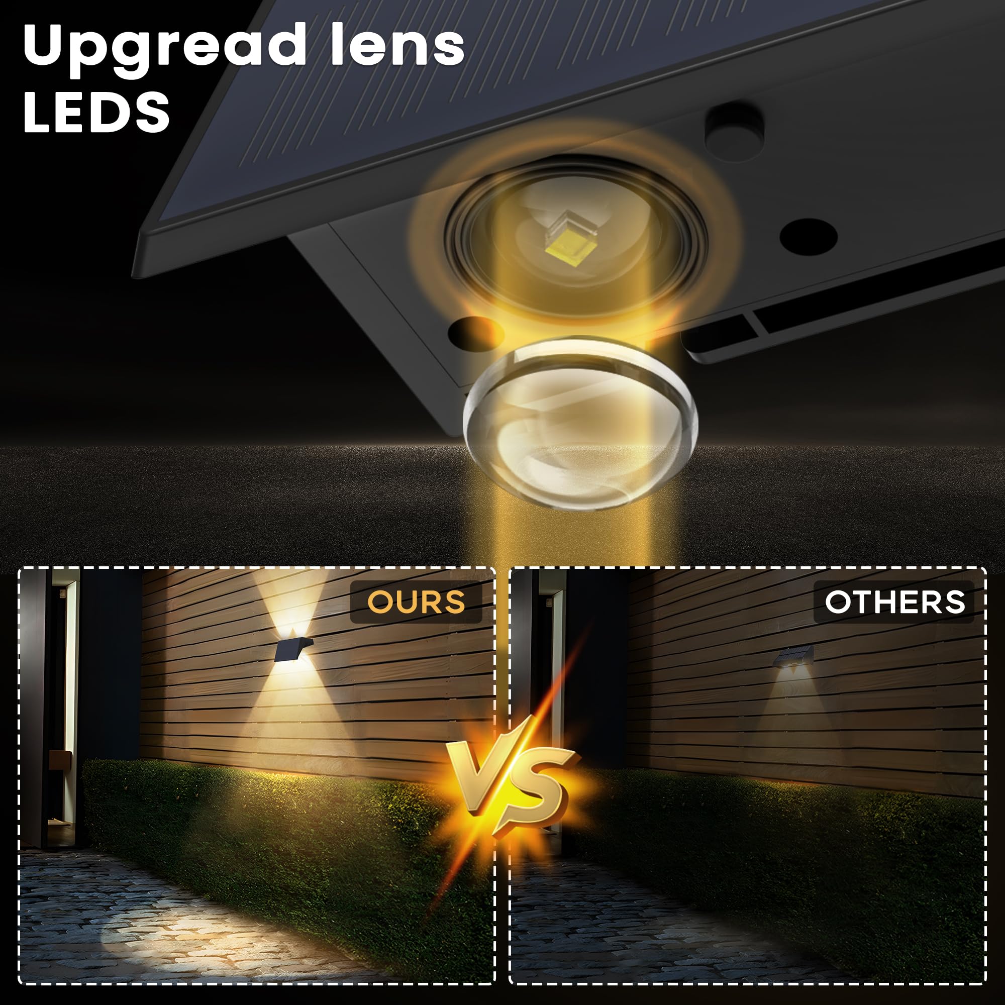 IIRARA Solar Wandleuchte Aussen, Solarlampen für Aussen Nach Oben und Unten Beleuchtet, 4 LEDs, Wasserdichte Aussenwandleuchten für Garten Balkon Terrasse Treppen Wandleuchten Warm RGB 6er