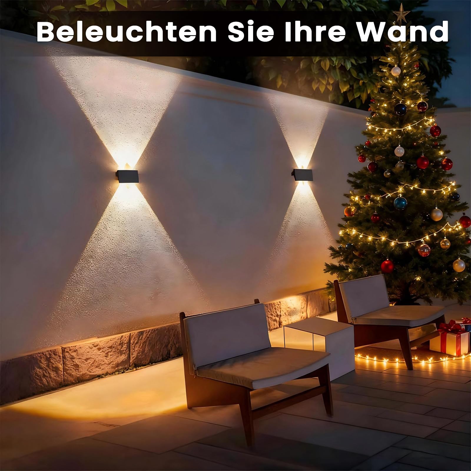 - 【3 Beleuchtungsmodi】: Die Solar leuchten bieten 3 Beleuchtungsmodi, um unterschiedlichen Anforderungen gerecht zu werden. Auf und ab: um gleichmässige und umfassende Lichteffekte zu erzielen. Nur nach unten gerichtet: Erzeugt einen konzentrierten Lichteffekt im unteren Teil eines Zauns oder einer Wand. Nur nach oben: Das flexible Design kann eine romantische Atmosphäre schaffen oder als festliche Dekoration dienen; eine grossartige Wahl für die Dekoration von Terrassen, Höfen, Garagen und Gärten.