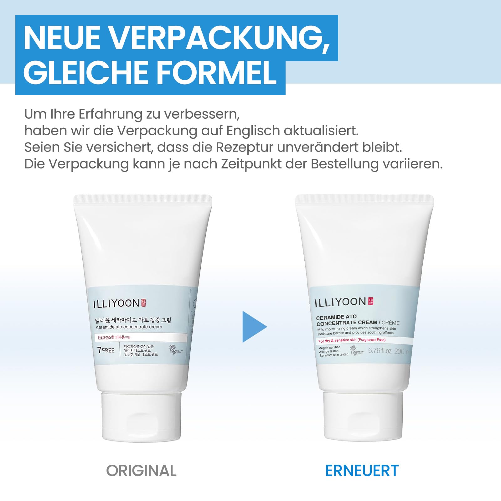 ILLIYOON Ceramide Ato Concentrate Cream (200ml) – Intensive Feuchtigkeitscreme mit Ceramid-Kapseln – 100 Std. Hydration für trockene & sensible Haut – Vegan
