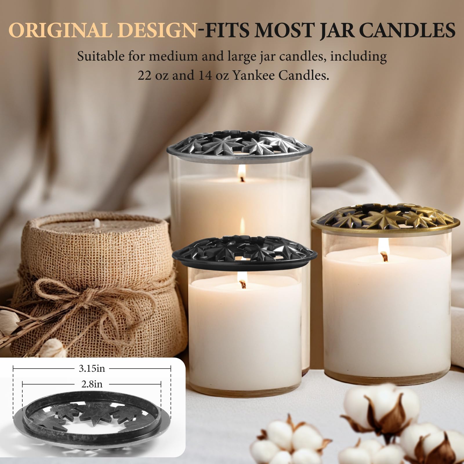 - [Für mehrere Grössen geeignet]Unsere Kerzen illuma lid,die für Kerzen verschiedener Grössen geeignet sind,grosse oder mittlere Glaskerzen verwendet werden,auch 623g und 411g yankee candles,es sei denn,Ihr Glaskerzendurchmesser übersteigt 83mm.