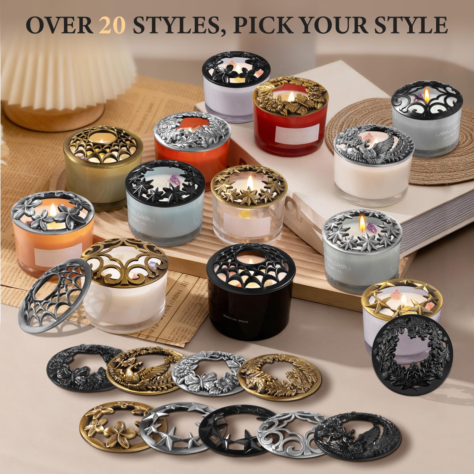 - Stilvolles & funktionales Design: Die elegante halbhohle Gravur verleiht Ihrer Kerze ein ansprechendes Aussehen, lässt den Duft frei zirkulieren und schützt das Wachs vor Staub. Funktioniert sowohl als Ersatz für Kerzendeckel als auch als dekorativer Kerzenschirm.