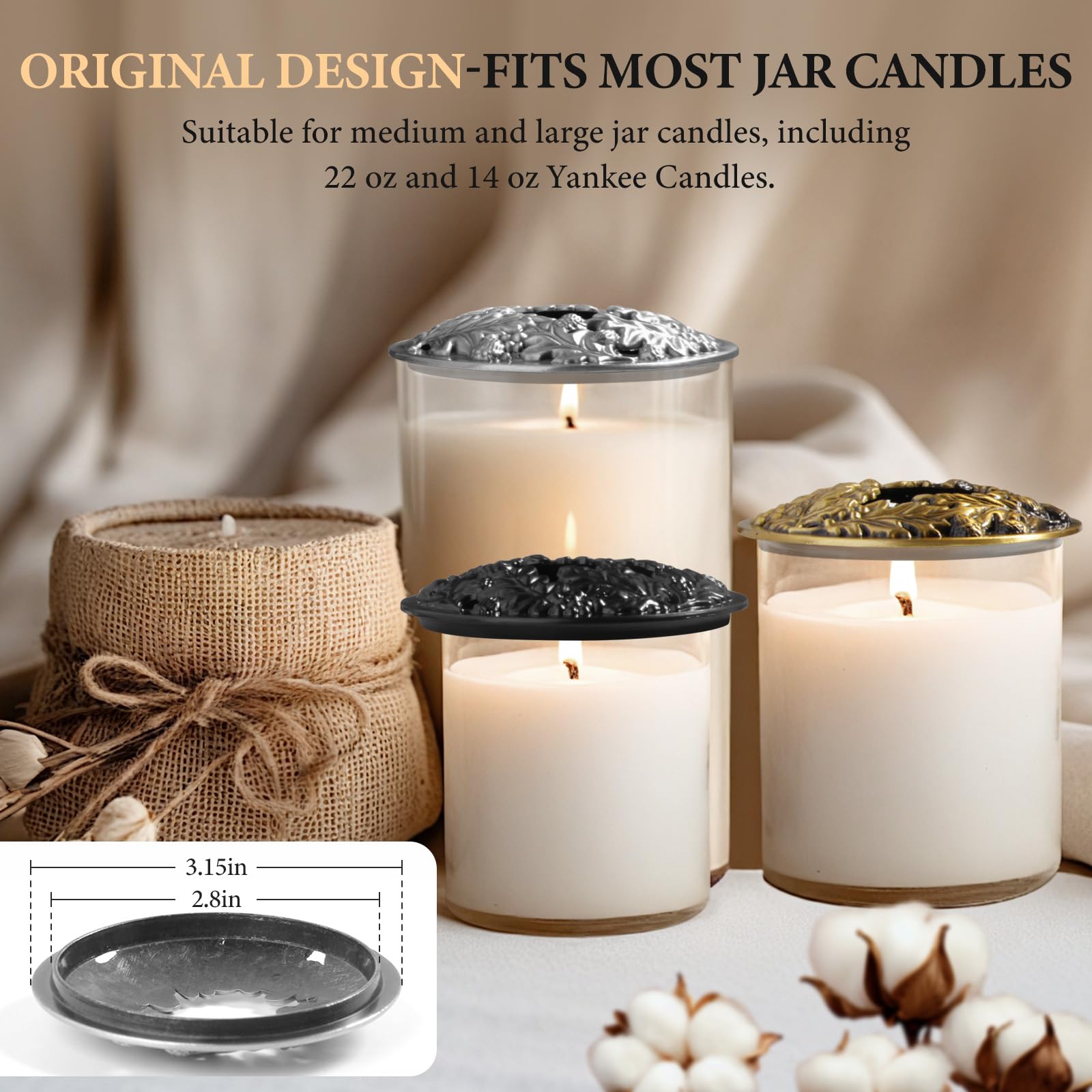 Hion Illuma Lid Kerzendeckel Aufsatz für Duftkerzen, Elegant geschnitztem Kerzenzubehör Scented Candle Topper, Weihnachtsdeko Geschenk hilft der Kerze gleichmässig zu brennen (Heilige Frucht Silber)