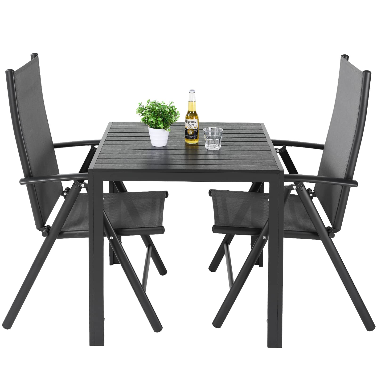 Increkid 3-TLG. Gartenmöbel-Set, Terrassenmöbel, Balkonmöbel - Sitzgarnitur aus Aluminium Teslin Hochlehner, 7-Fach verstellbar - Wetterfest und Klappbar