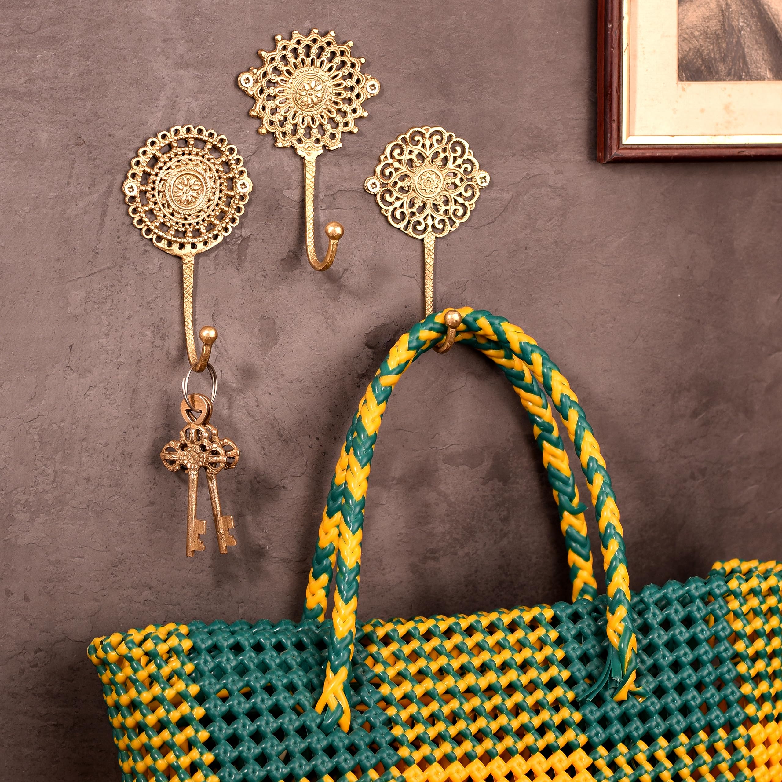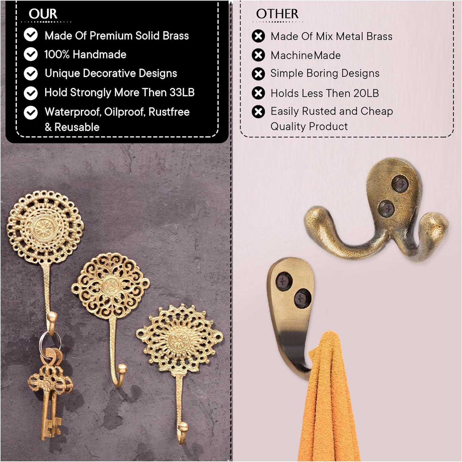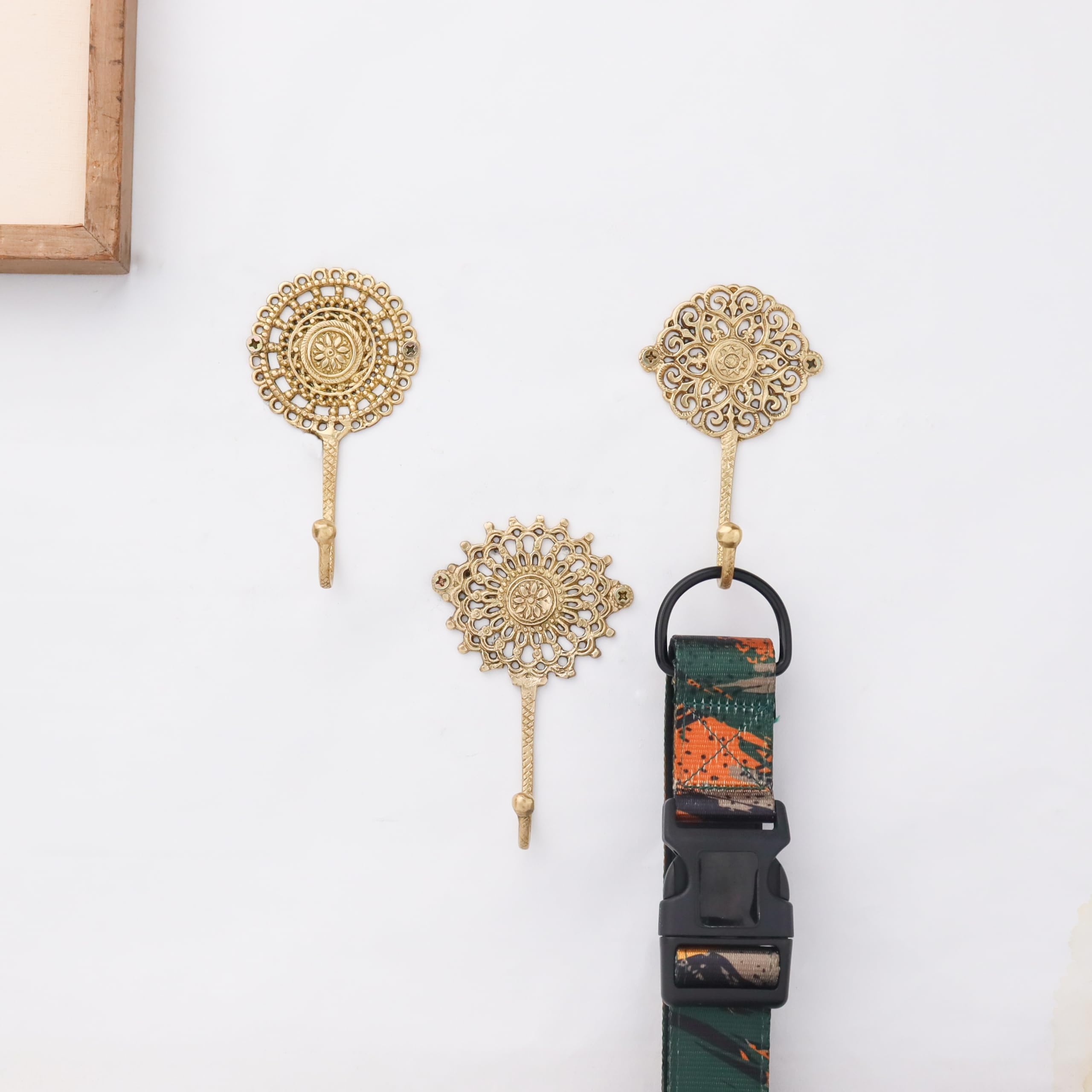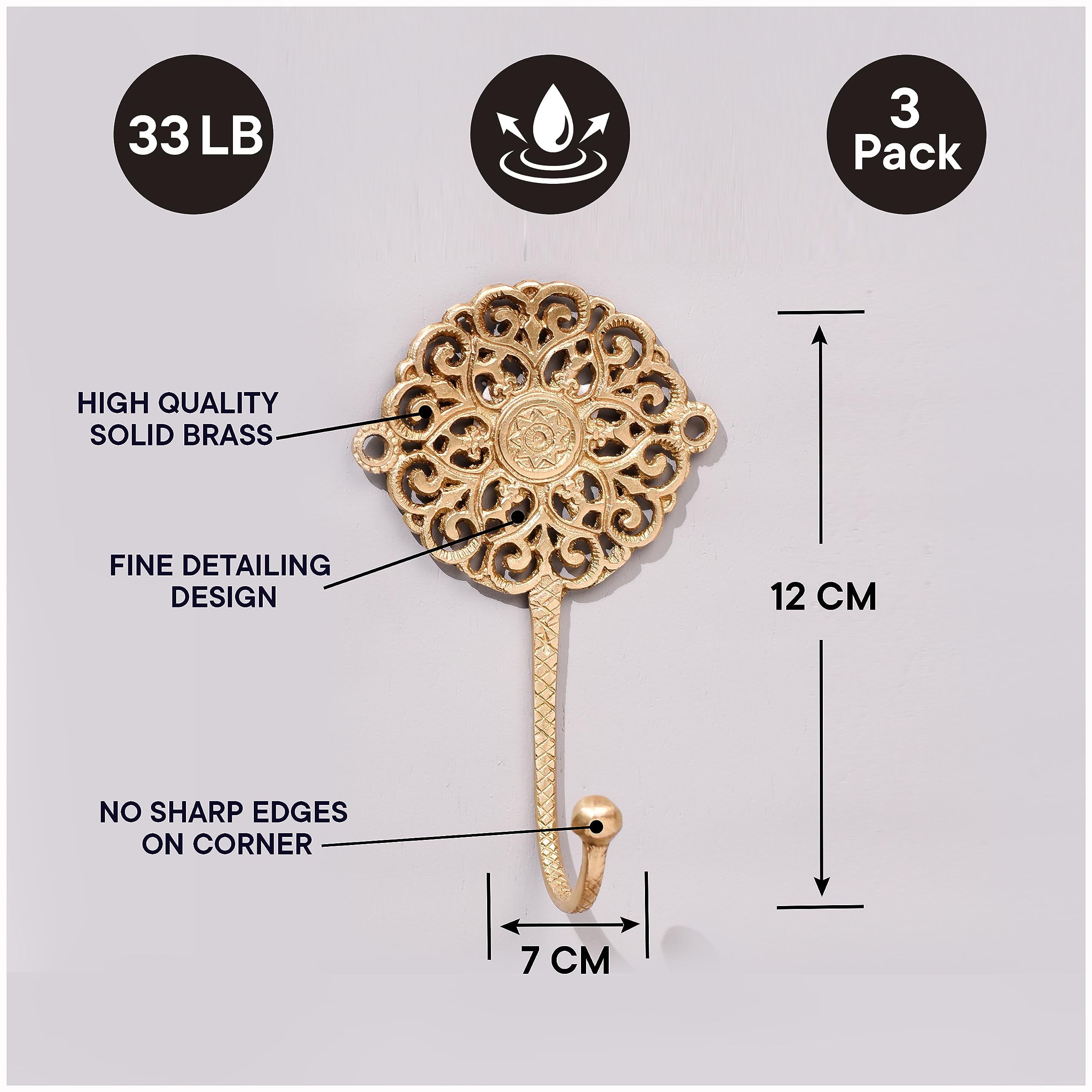 Indian Shelf 3 Wandhaken Gold Dekorative Wandhaken Boho Messing Shabby Chic Haken Einzigartige Boho Garderobenleiste Gold Vintage Haken zum Aufhängen Mantel