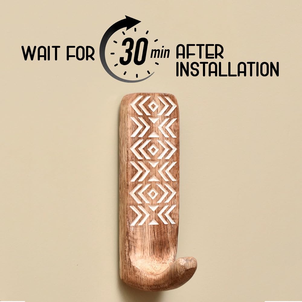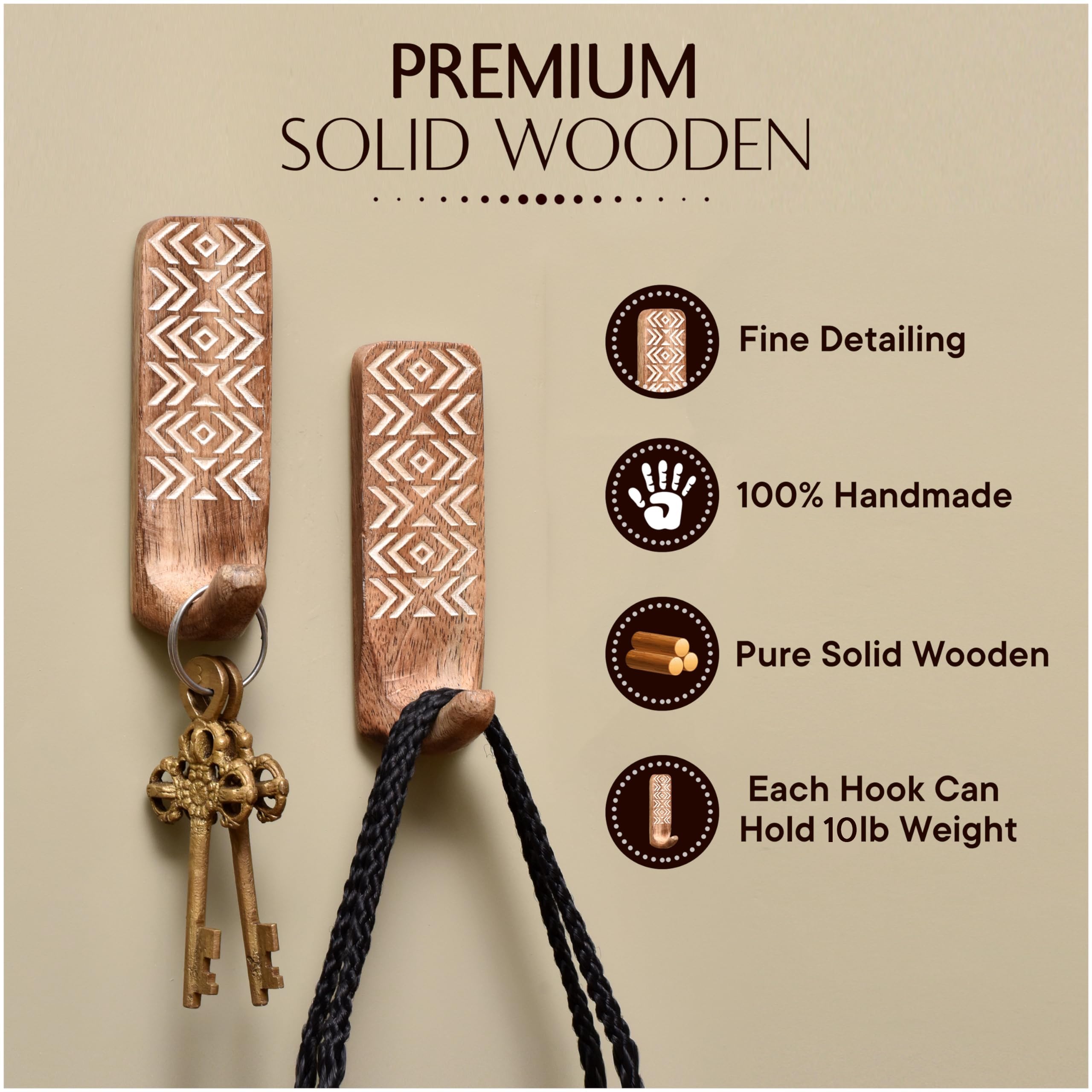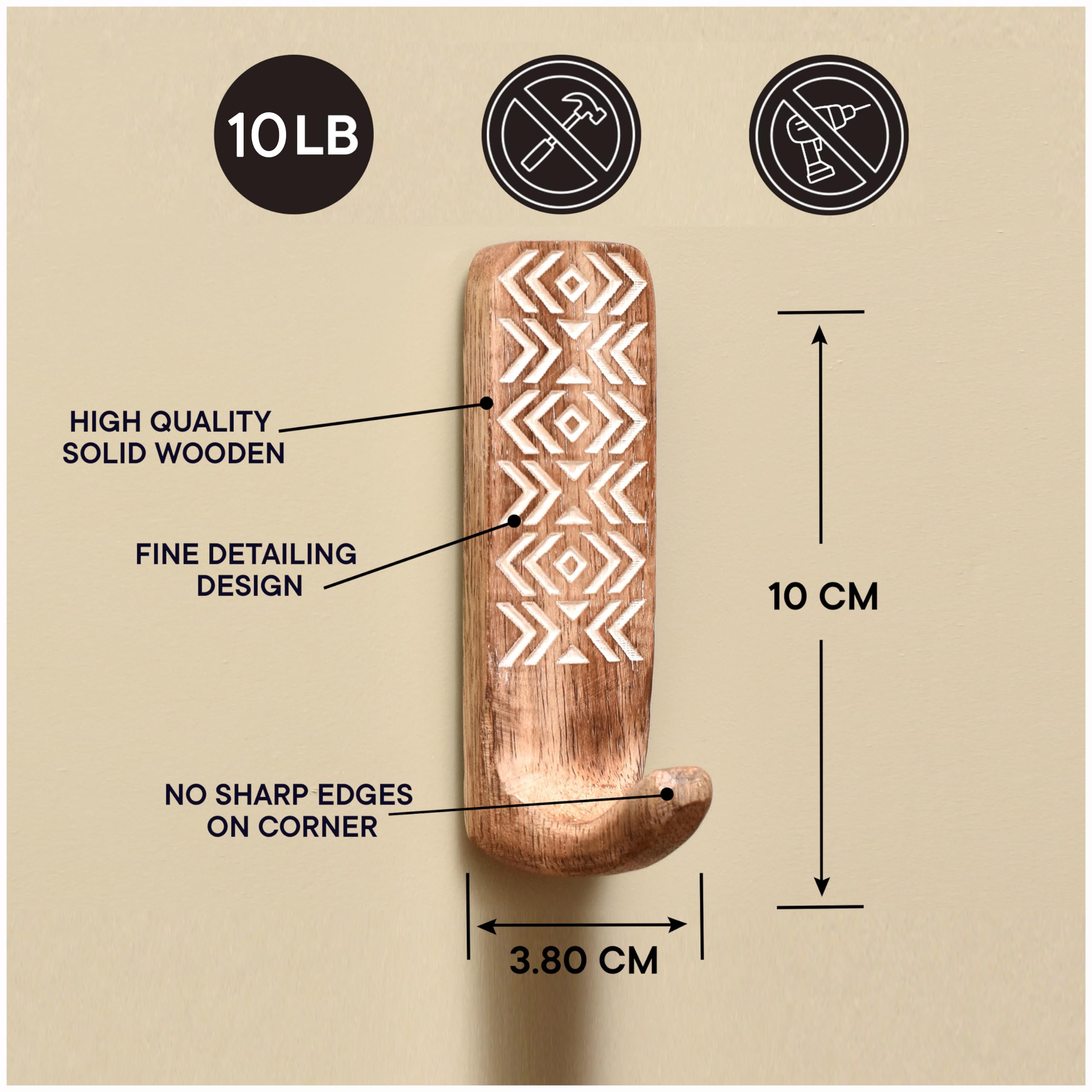 IndianShelf 3 Haken, 6 Streifen Holz-Wandhaken - Selbstklebende Wandhaken - Boho-Schlüssel Dekorative Wandhaken zum Aufhängen - Holz-Aufhänger - Klebende Mantelhaken Wandmontage - Hölzerne