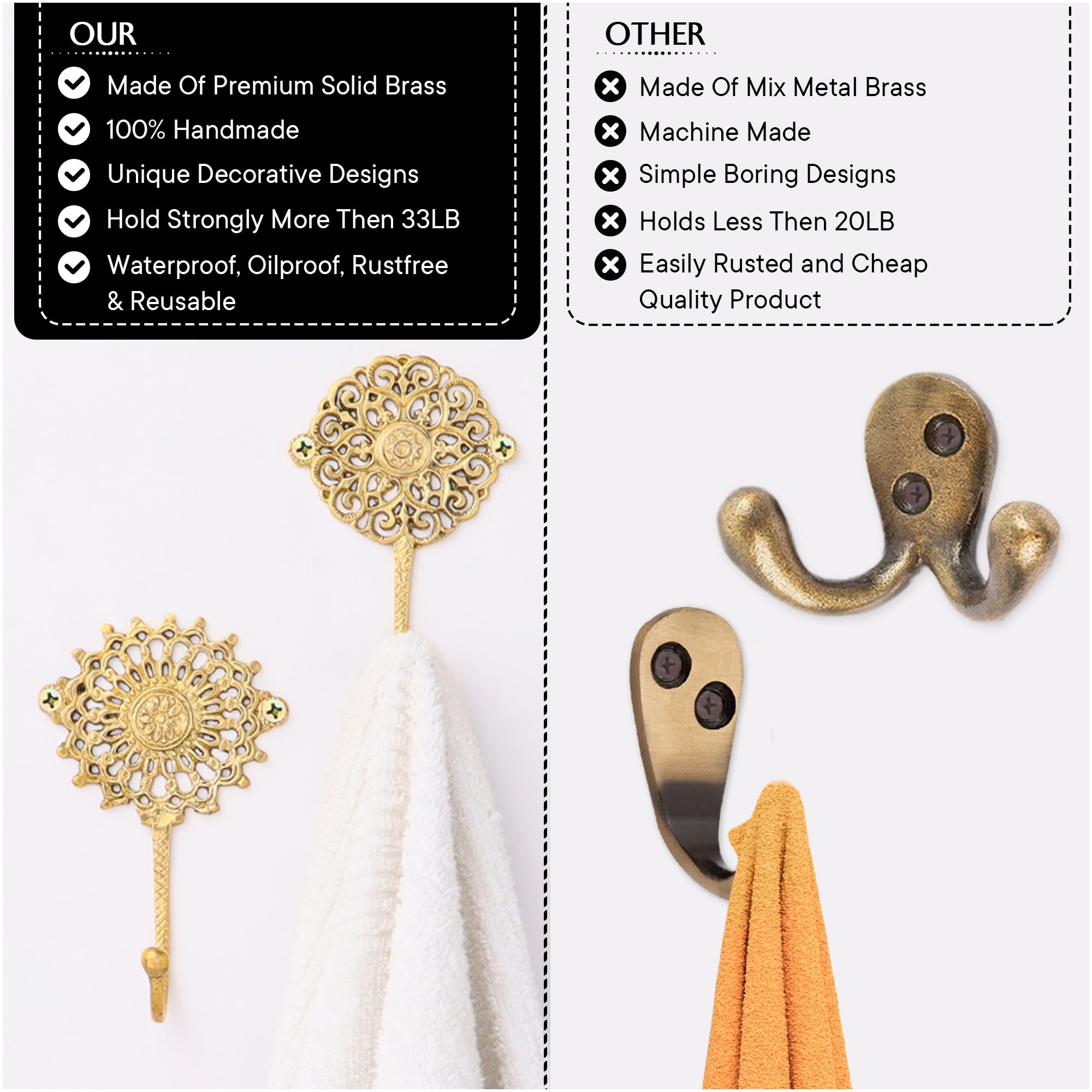 Über unsere Vintage-Wandhaken: Diese dekorativen Haken sind handgefertigt und verleihen einen klassischen Look. Der Kleiderhaken ist in verschiedenen Designs und Farben erhältlich. Hergestellt von erfahrenen Handwerkern aus Indien. Du kannst diesen Wandhaken verwenden, um Kleidung, Hüte, Schlüssel, Handtücher, Kaffeetassen und mehr aufzuhängen. Schrullig, raffiniert, trendy, was auch immer du über deinen persönlichen Geschmack aussagen möchtest, wir haben eine riesige Sammlung von Designer-Kleiderhaken. IndianShelf Boho-Kleiderhaken, Shabby-Chic. französisch-Messing, dekorative Wandhaken, Gold, Vintage-Stil, Schlüsselhalter, Garderobe, Wandhalterung, 3 Stück.
