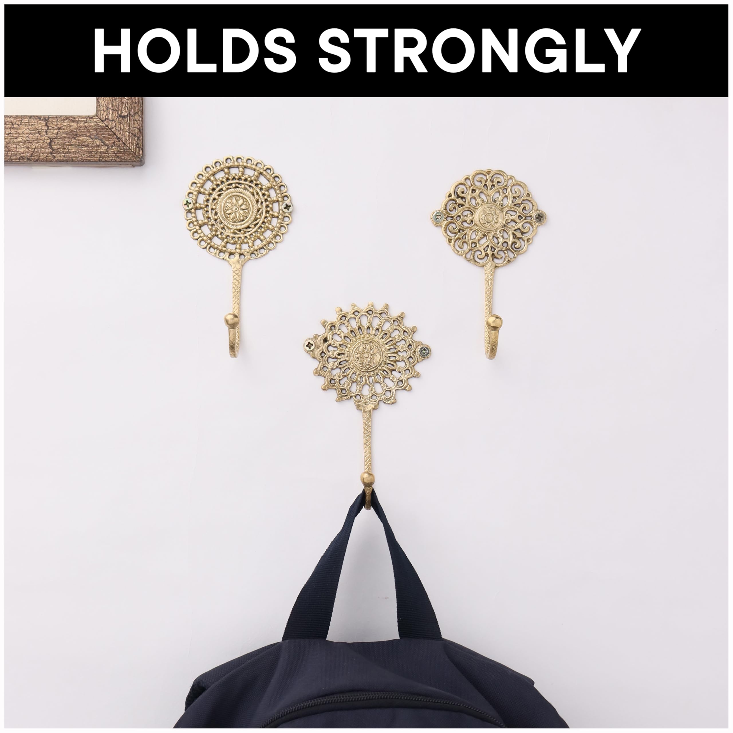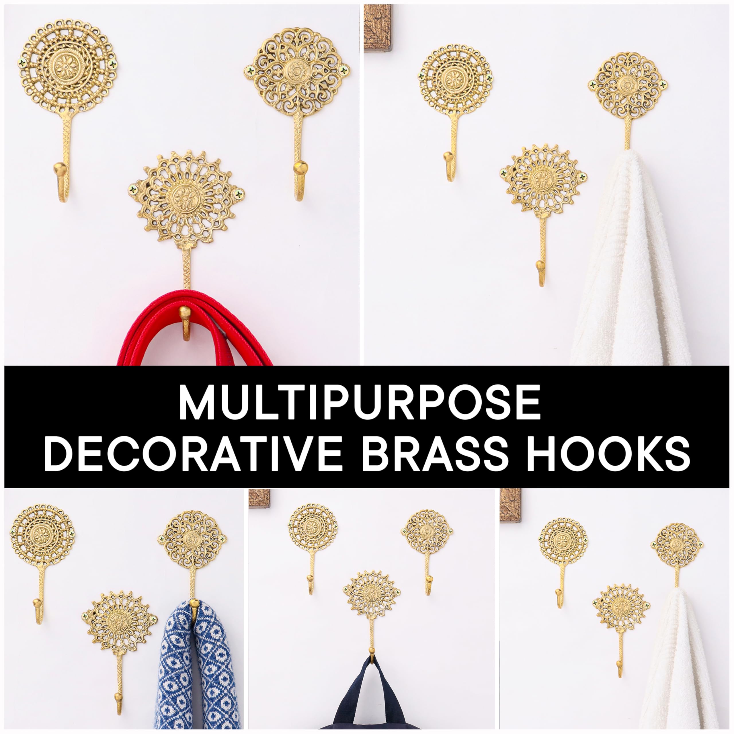 Indian Shelf Boho-Wandhaken in Gold, dekorativ, Messing, Shabby-Chic, Schlüsselhaken, Garderobe, Wandhalterung, Vintage, zum Aufhängen von Mänteln, 3 Stück