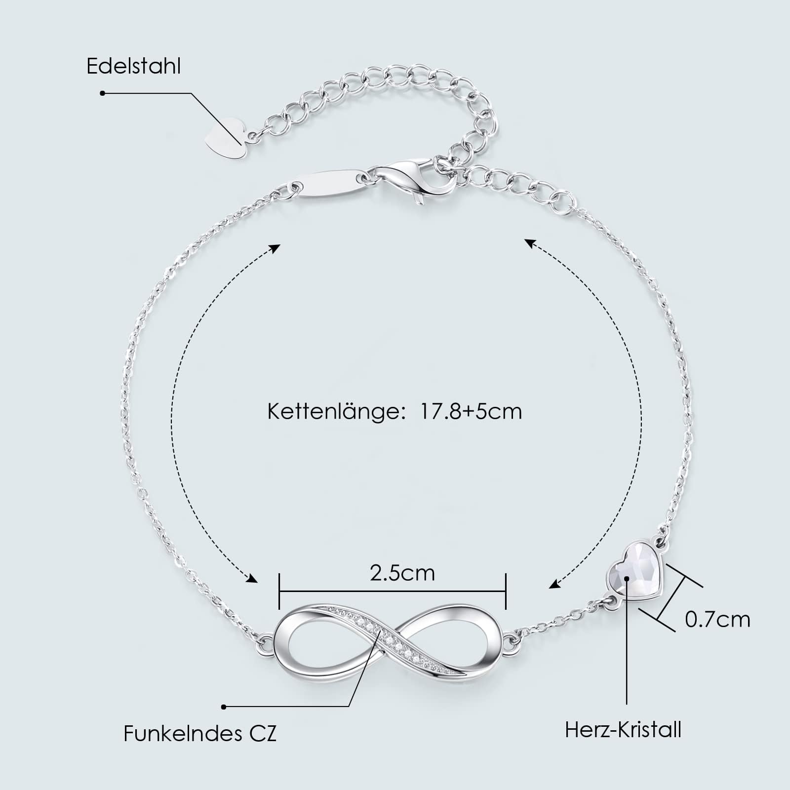 Infinity Armband Damen 925 Sterling Silber Rosegold, Unendlichkeit Herz Armbänder Kristallen Verstellbar Armkette Valentinstag Muttertag Geburtstags Weihnachten Geschenk für Sie Frauen Freundin mama ?? DESIGNKONZEPT --- Roségold Infinity Herz Charm Armband steht für ewige Liebe. Die Bedeutung eines unendlichkeitszeichen armband ist eigentlich sehr schön - es symbolisiert Ewigkeit und ewige Liebe. Unendlichkeit ist für immer, deine Liebe wird bis ins Unendliche dauern. Das Unendlichkeitssymbol - unendliche Liebe und Freundschaft. Immer und für immer Endlose Liebe! Es ist eine grossartige Möglichkeit für jemanden, einem anderen zu sagen, wie sehr er sich für einen anderen interessiert. ?? MATERIALIEN --- Die Damenarmbänder bestehen aus Edelstahl 316L. Dieses 7+2 verstellbare Armband wird mit einem Karabinerverschluss befestigt und ist mit einem Herzanhänger und einem Unendlichkeitssymbol verziert, das mit österreichischen Kristallen glänzt. ?? GESCHENKE FÜR FRAUEN --- Das Herzarmband wird in einer Geschenkbox geliefert. Perfekt und einfach romantisch, passt zu allen Altersgruppen. Ein perfektes Geschenk für Mutter, Frau, Mädchen, Oma, Tochter, Enkelin, Schwestern, Freunde oder sich selbst. Als Weihnachtsgeschenk, Muttertagsgeschenk, Hochzeitsgeschenk, Jubiläumsgeschenk, Geburtstagsgeschenk, Abschlussgeschenk, Valentinstagsgeschenk. ?? MUSS-MODE-EINZELTEILE IN DER SCHMUCKKASTEN FÜR FRAUEN HABEN --- Das exquisite Herz-Unendlichkeits-Armband ist mit funkelnden Kristallen verziert, hat einen Lichtfang-Effekt, passt zu jeder Kleidung wie einem einteiligen Kleid, Hemden oder Jeans und ist sehr praktisch für das tägliche Outfit eines Mädchens. Anzug für Dating oder formelle Geschäfte. Es ist definitiv ein Modeartikel für jeden Damenschrank.