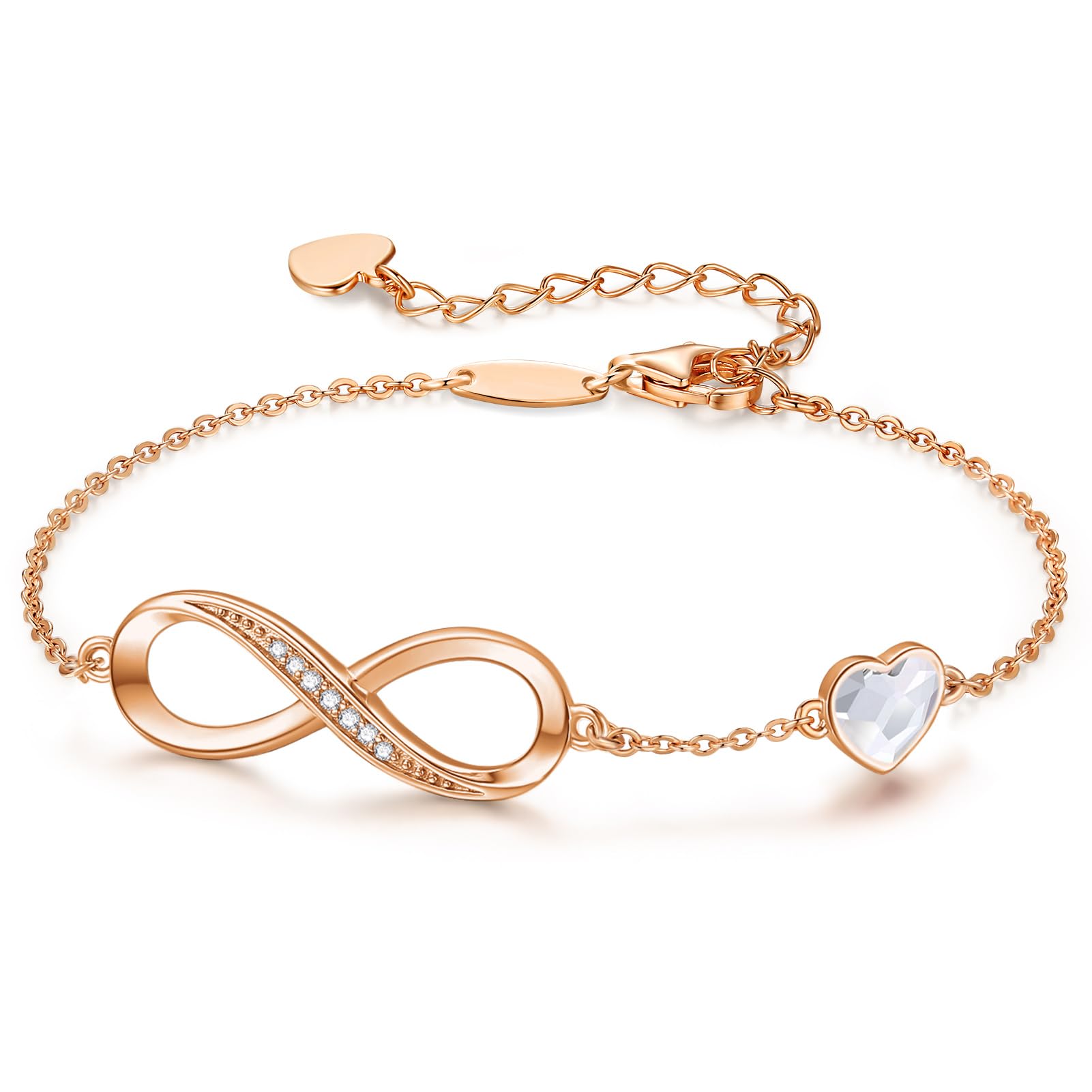 Infinity Armband Damen 925 Sterling Silber Rosegold, Unendlichkeit Herz Armbänder Kristallen Verstellbar Armkette Valentinstag Muttertag Geburtstags Weihnachten Geschenk für Sie Frauen Freundin mama