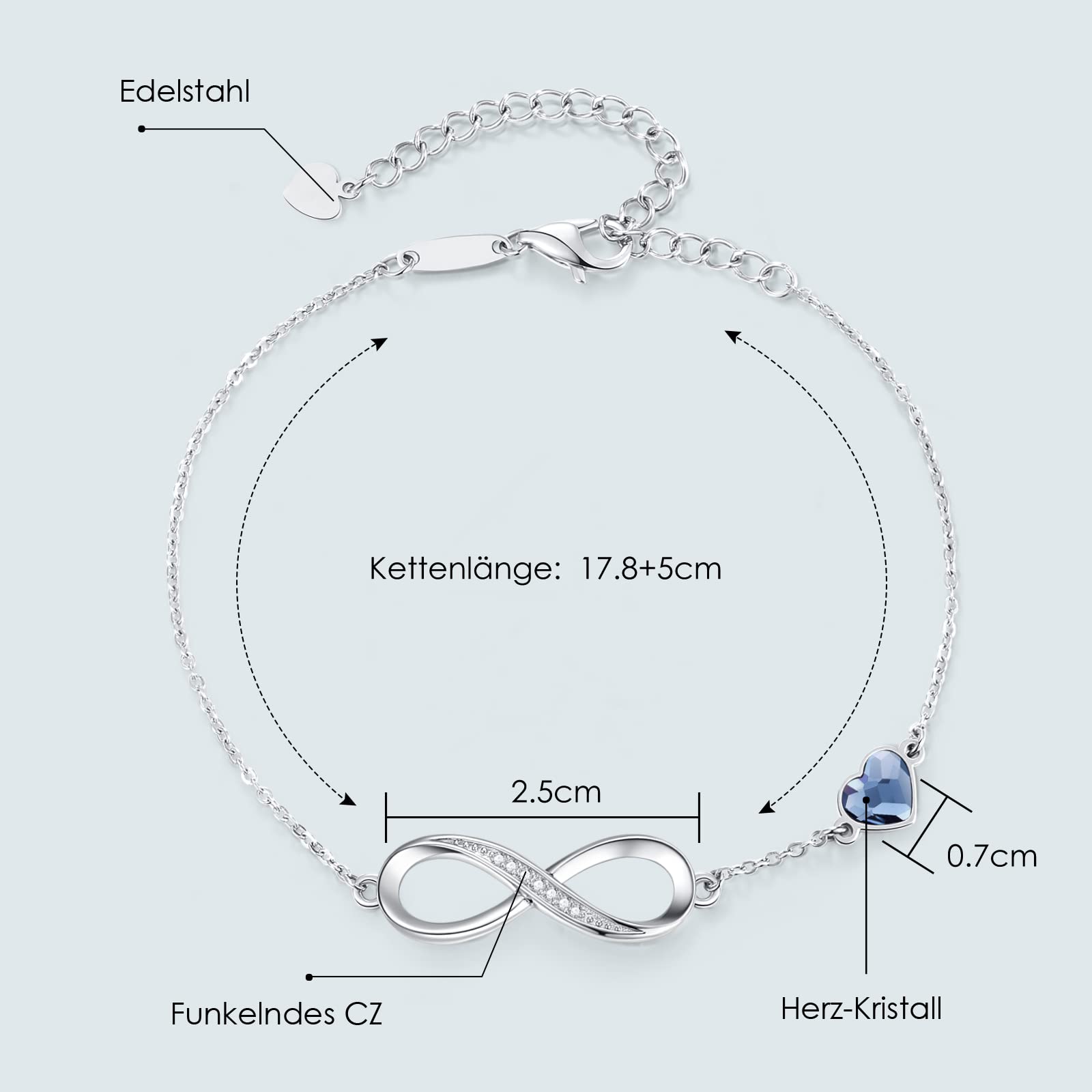 - ???? MATERIALIEN --- Die Damenarmbänder bestehen aus Edelstahl 316L. Dieses 7"+2" verstellbare Armband wird mit einem Karabinerverschluss befestigt und ist mit einem Herzanhänger und einem Unendlichkeitssymbol verziert, das mit österreichischen Kristallen glänzt.